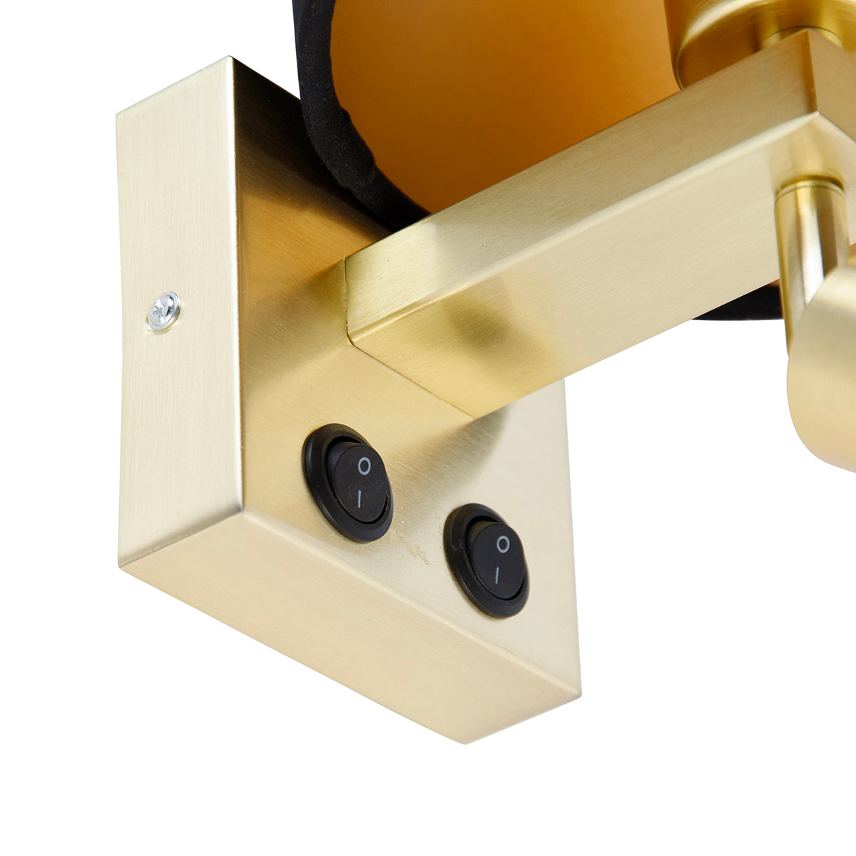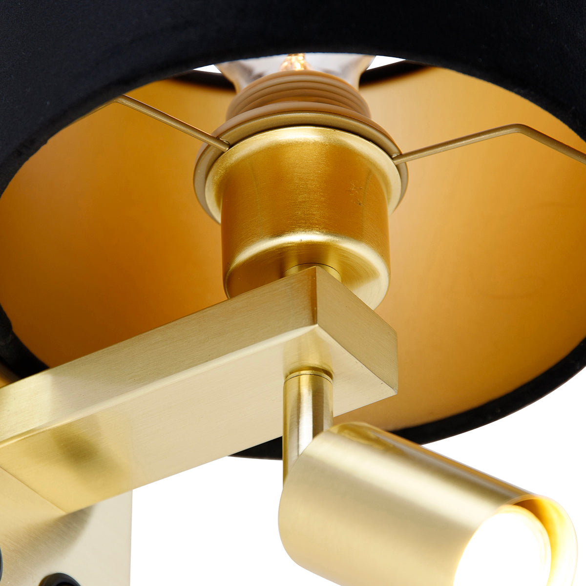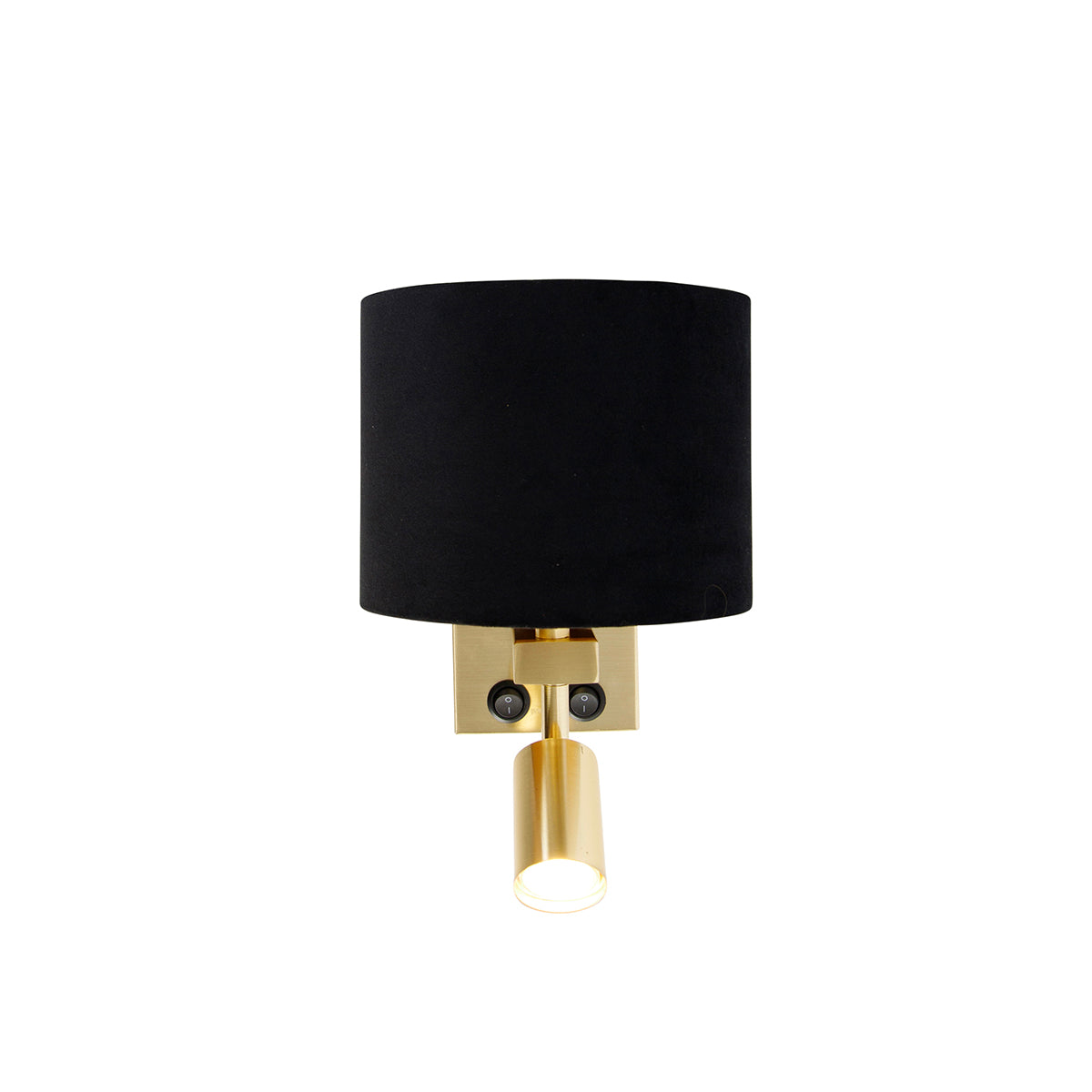 QAZQA Wandlamp messing met leeslamp en kap 18 cm zwart - Brescia