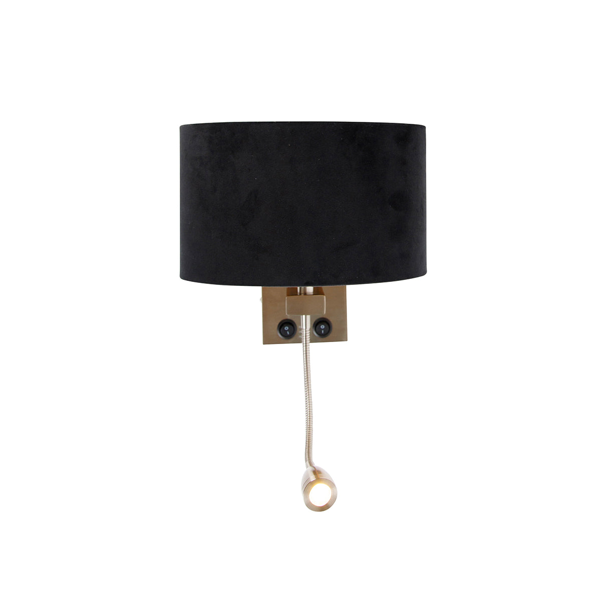 QAZQA Wandlamp staal met ovale velours kap zwart 25cm - Brescia Combi