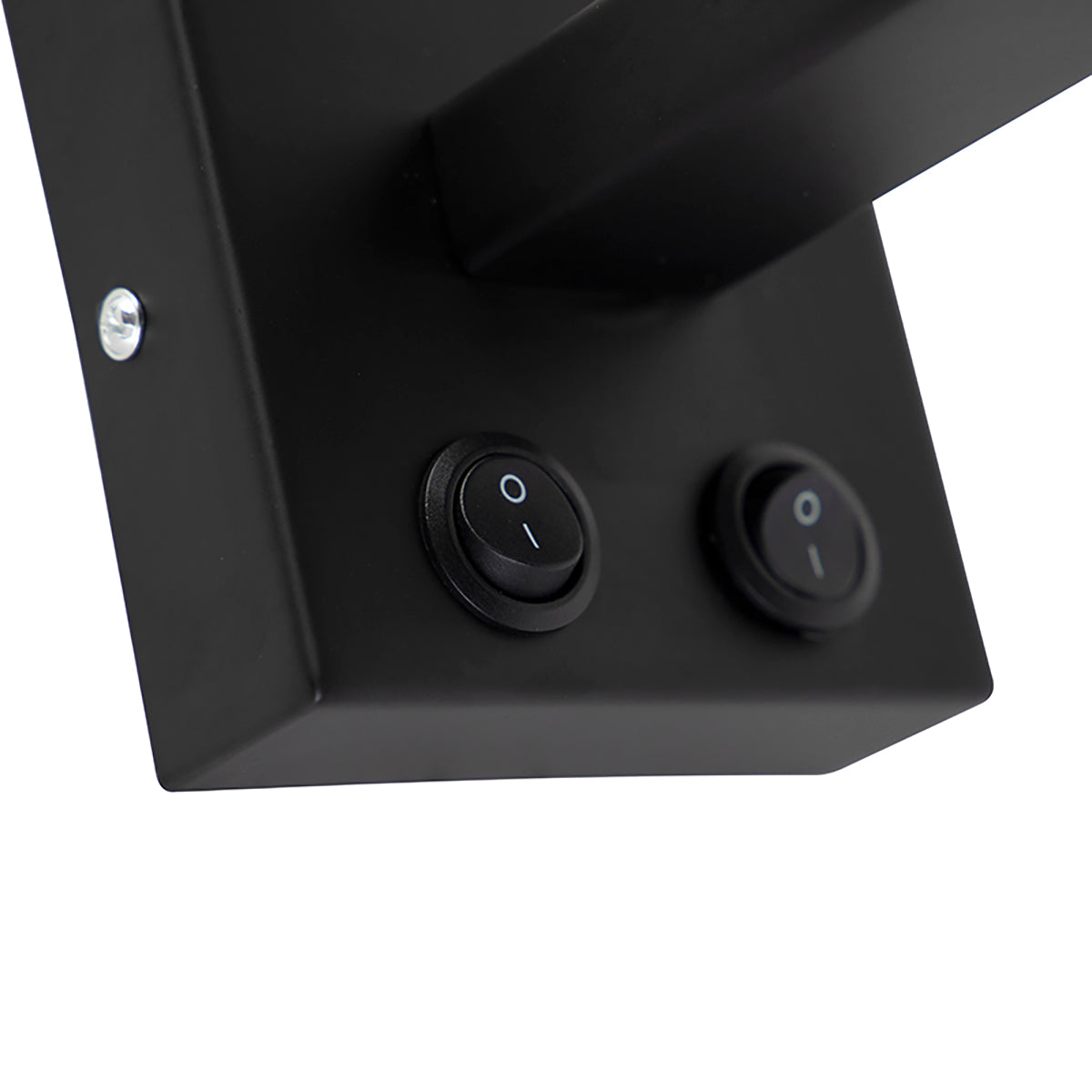 QAZQA Wandlamp zwart met velours lampenkap blad dessin met gouden