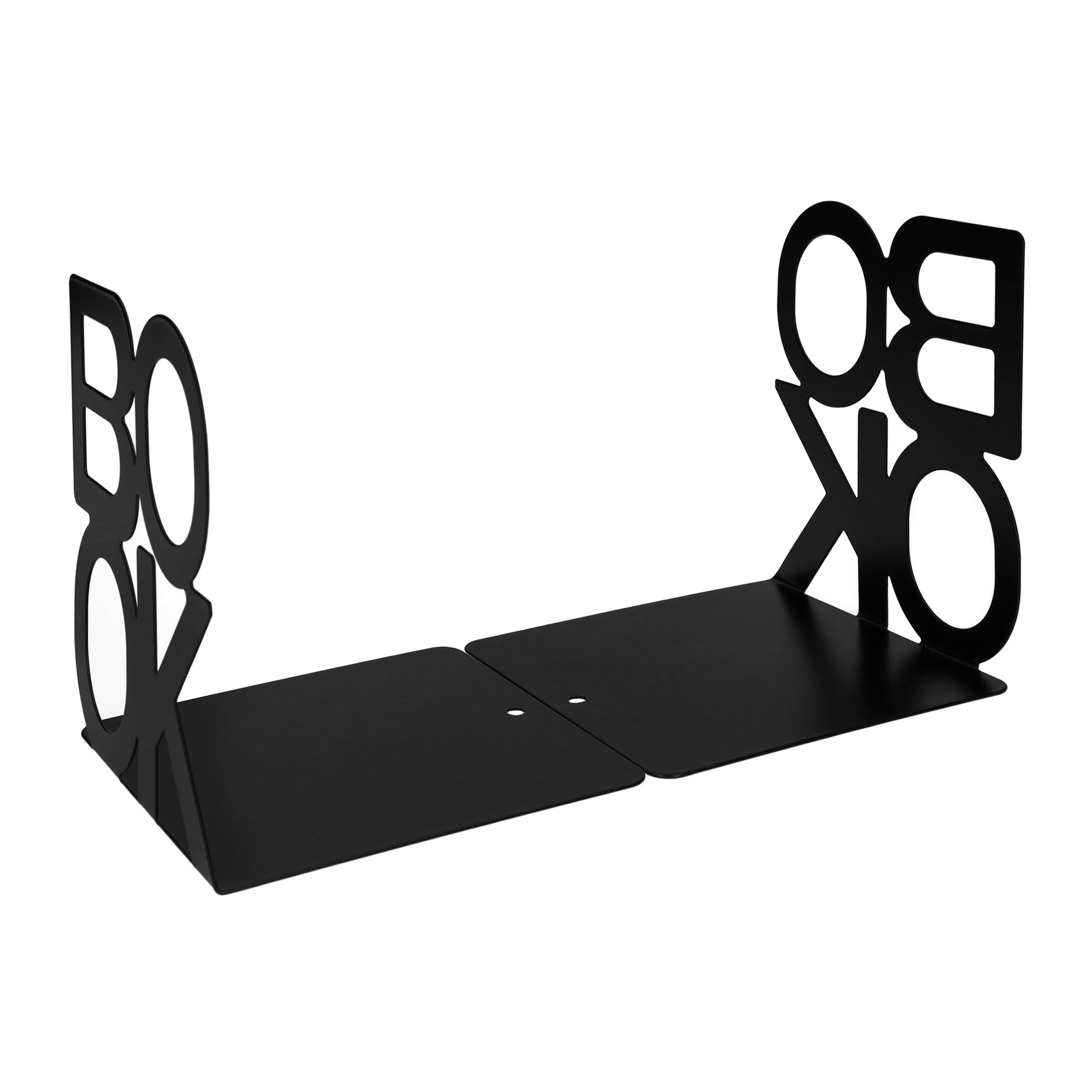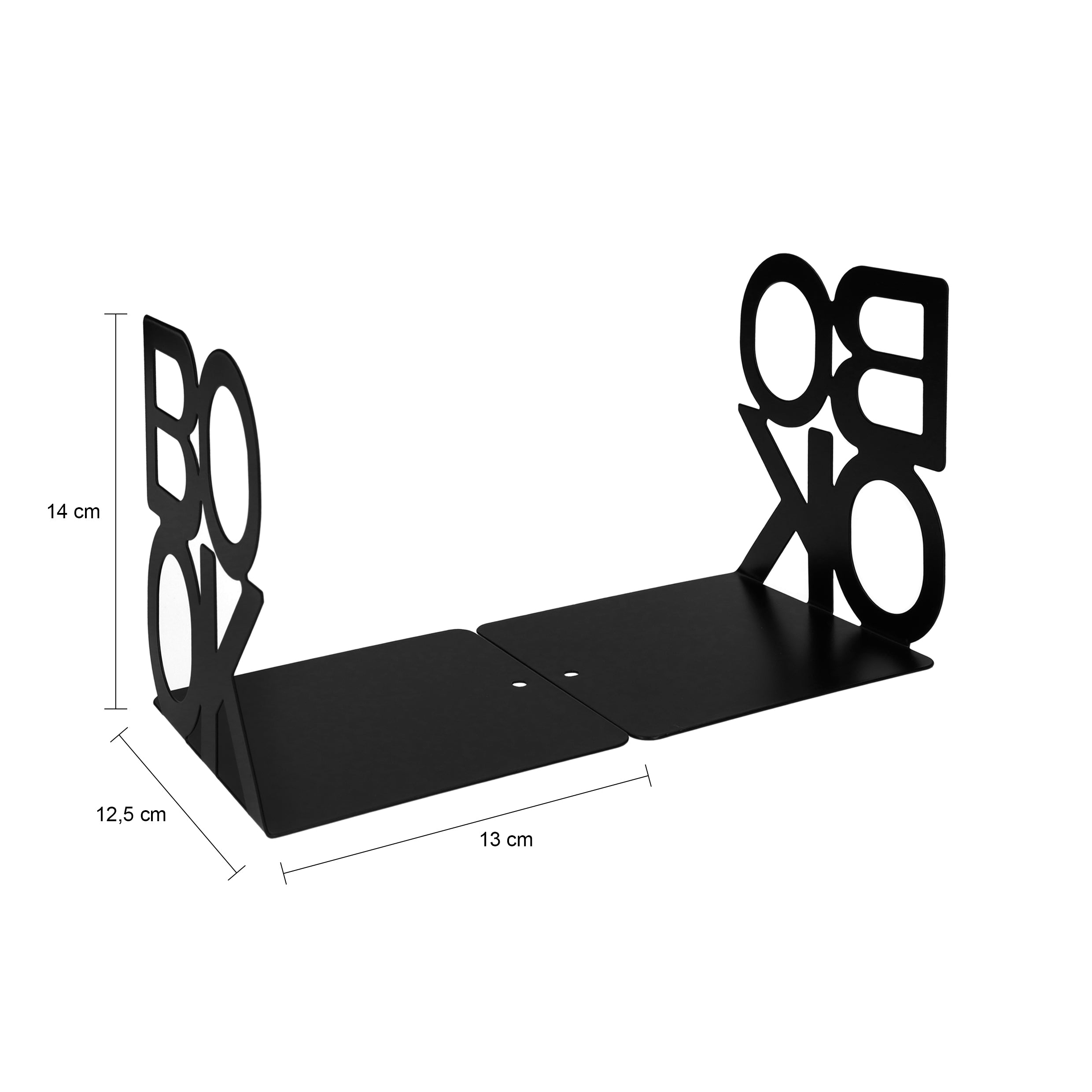 Een decoratieve boekenstandaard is een leuke toevoeging aan een ruimte. De letters BOOK vormen de zijkant van de steun. Het zwarte metaal maakt de boekenhouders strak en modern.