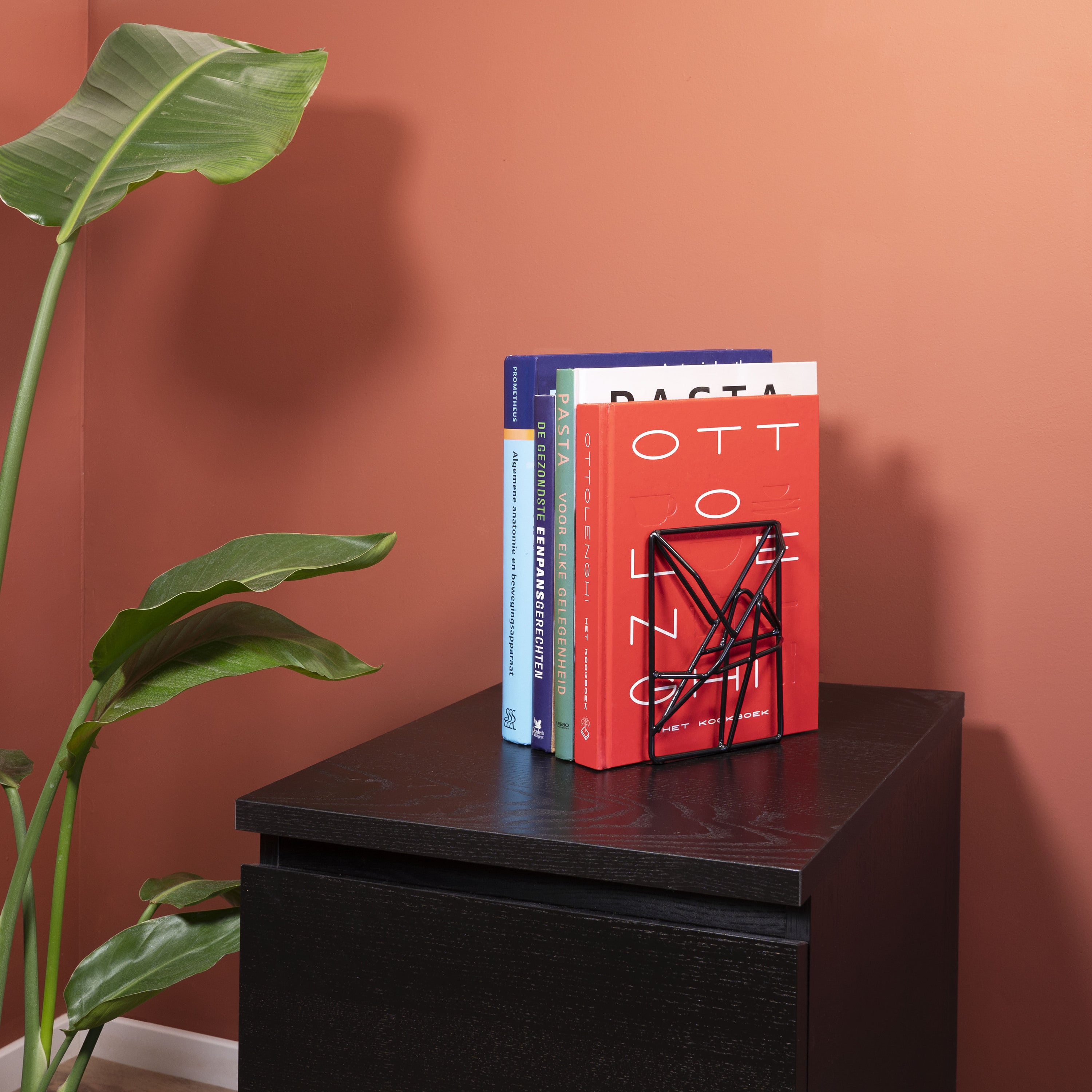 Breng design aan je interieur aan met deze QUVIO Boekenstandaard De QUVIO Boekenstandaard van gaasmetaal is ontworpen om je boeken en tijdschriften overzichtelijk en georganiseerd te houden. De extra lange basis en beschermende voetjes zorgen voor grip en stabiliteit bij wegglijden en de hoogwaardige,zware metalen constructie voorkomt dat de boekensteunen buigen. Belangrijkste kenmerken -Brengt design aan je interieur aan -Een speels geheel dankzij de versterkte afgeronde randen -Materiaal: Draadstaal Een speels geheel dankzij de versterkte afgeronde randen De versterkte afgeronde randen zorgen voor een aantrekkelijke en professionele uitstraling die bij elke kantoorinrichting past. Maar ook voor in je woonkamer,keuken of slaapkamer is dit een leuke toevoeging. De boekensteunen zijn de perfecte combinatie van kenmerken en functie en hebben door het lijnenspel een minimalistische look. Ontworpen om je favoriete boeken stabiel te houden Ontworpen om je favoriete boeken stabiel te houden in een verbluffende stijl,zijn boekensteunen een onmisbare aanvulling op elk thuiskantoor of elke studie die te weinig schapruimte heeft. Deze charmante designs hebben een glanzende zwarte afwerking die goed past bij de esthetiek van alle soorten interieurs. Doordat de steunen los van elkaar neer kunnen worden gezet,ben je erg flexibel als het op de indeling aankomt. Hierdoor kun je onder meer fotoalbums,studieboeken en dossiers netjes ordenen met deze handige boekenhouders.