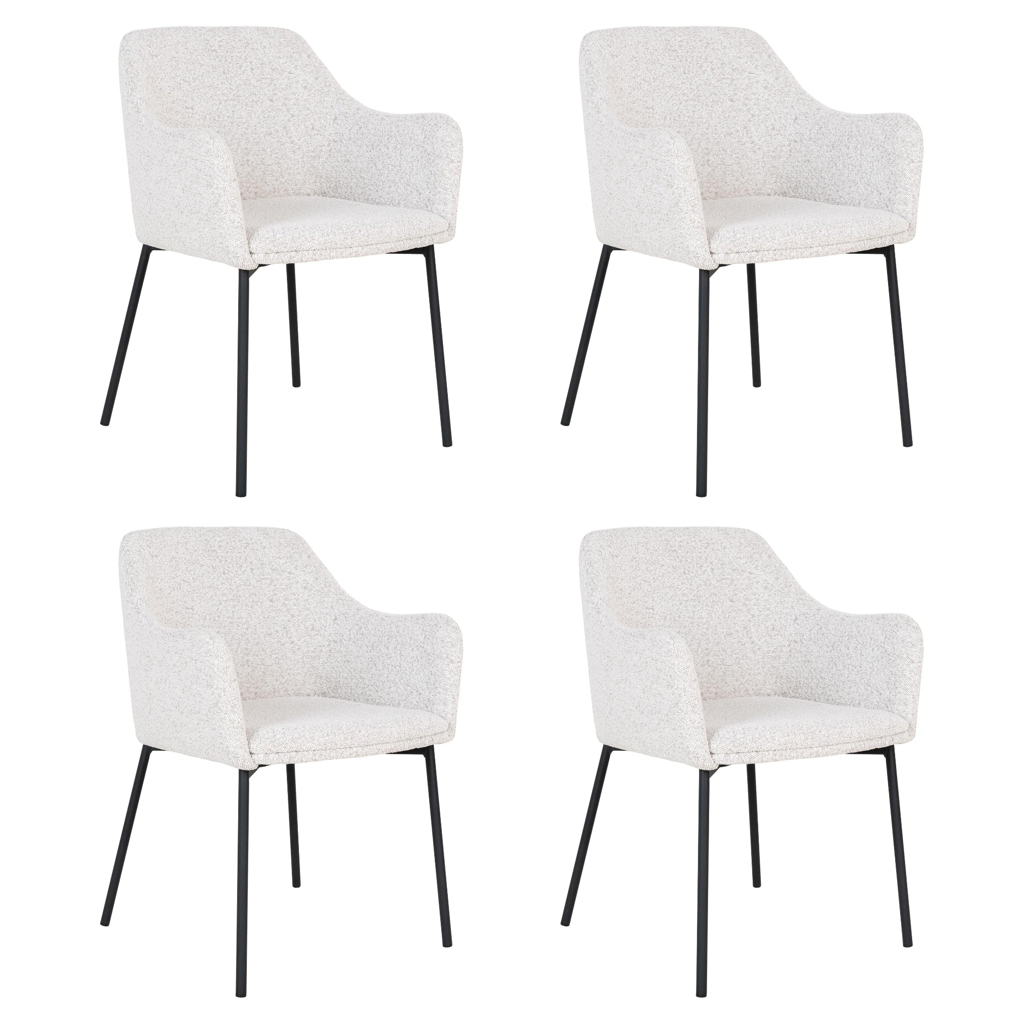 QUVIO Eetkamerstoel Lima - Bouclé - Staal - Wit - Set van 4