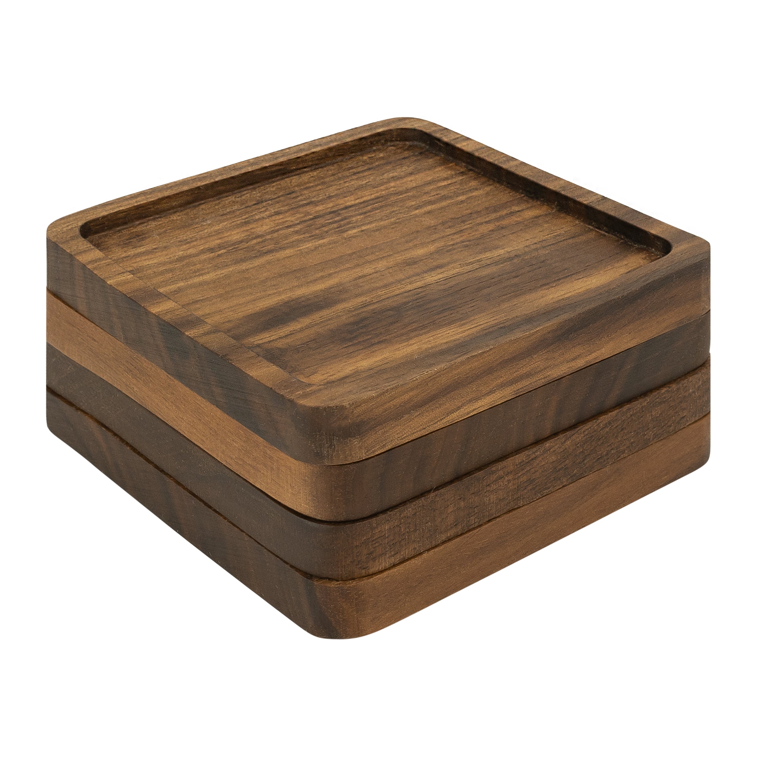 - Het donkere hout in combinatie met de vierkante vorm maken van deze onderzetters unieke blikvangers.