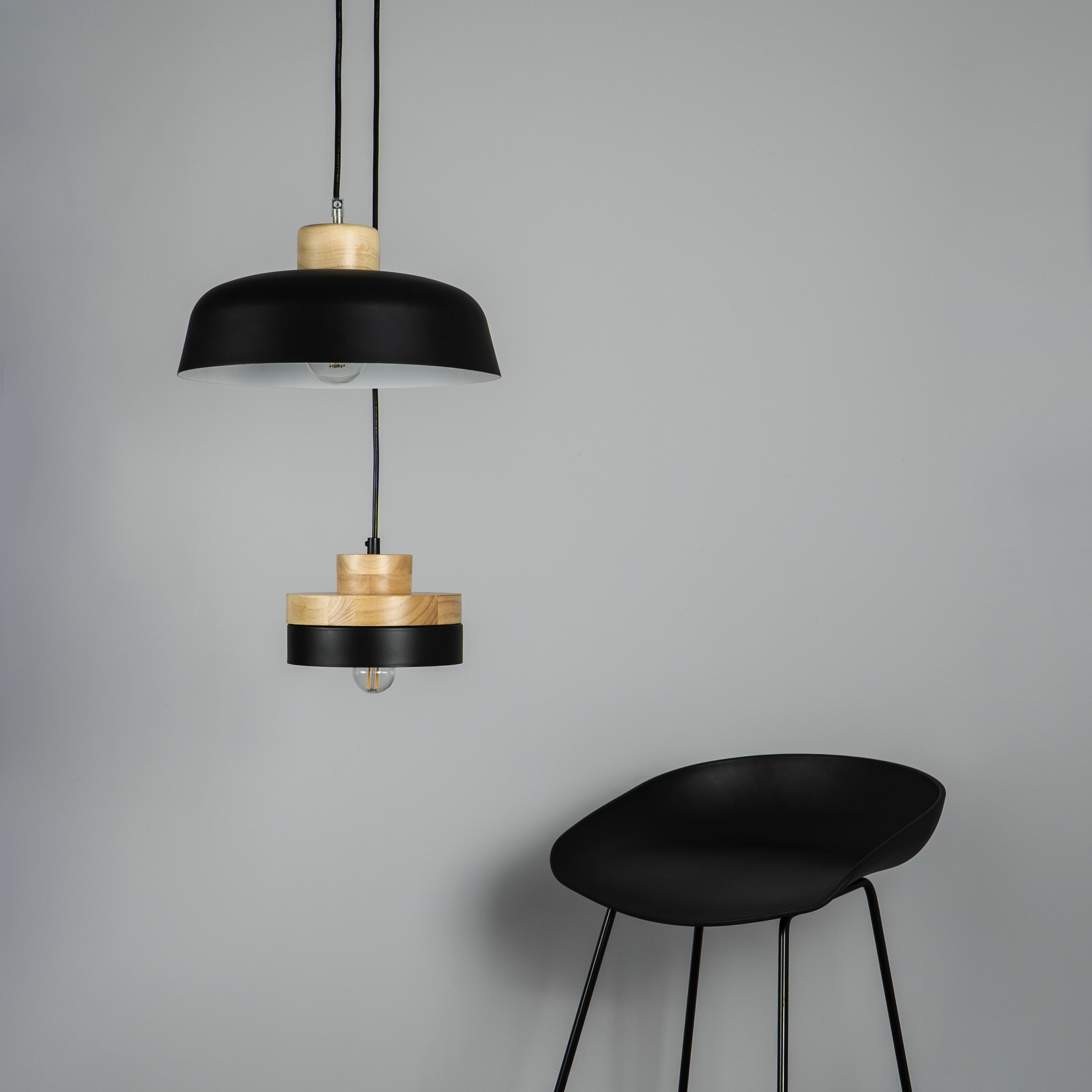 - Deze QUVIO hanglamp van hout en zwart aluminium is een lamp van hedendaags design die een meerwaarde aan je woning geeft.