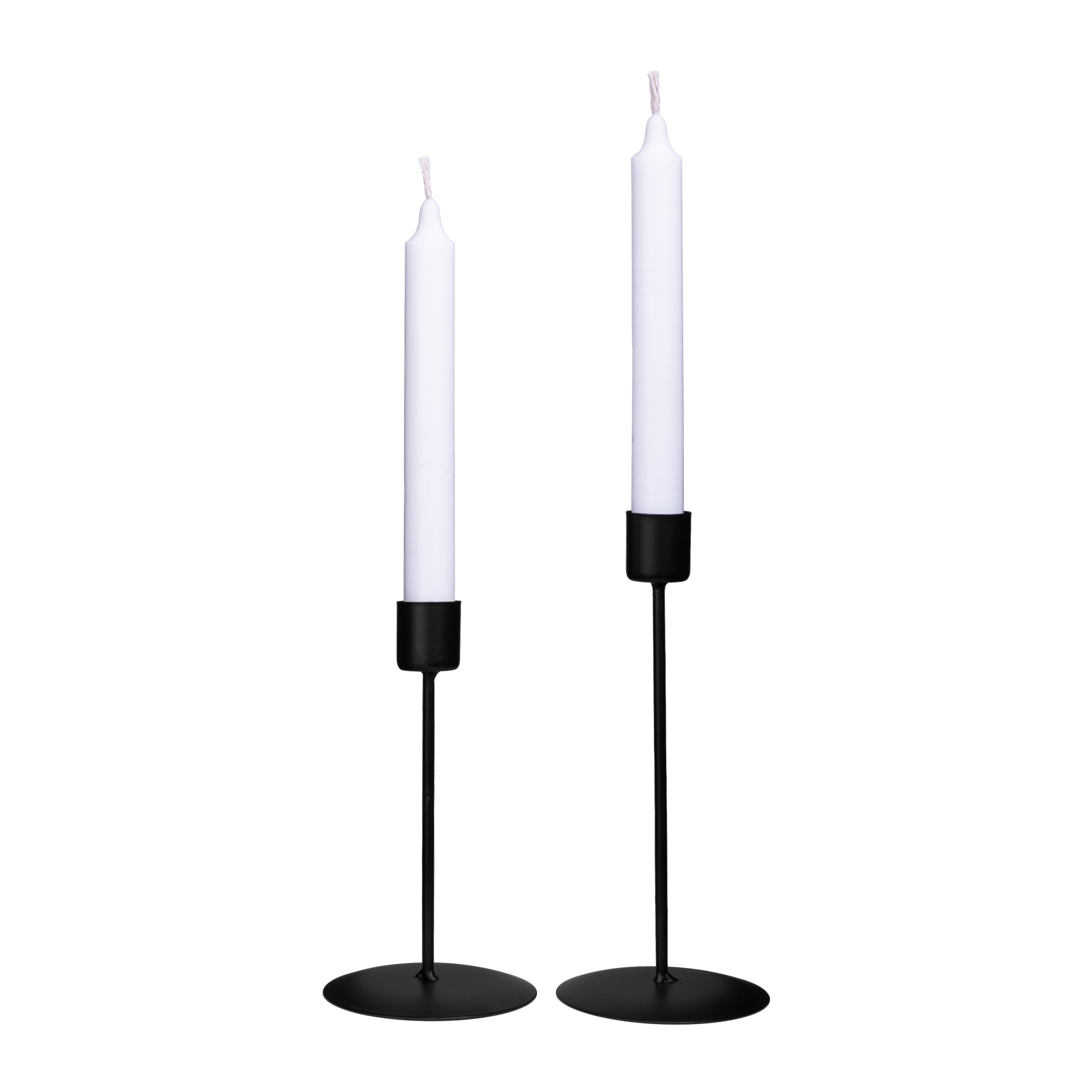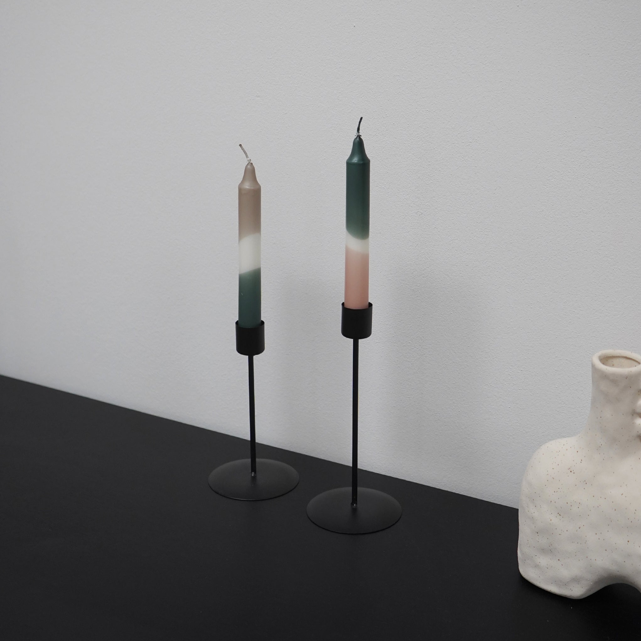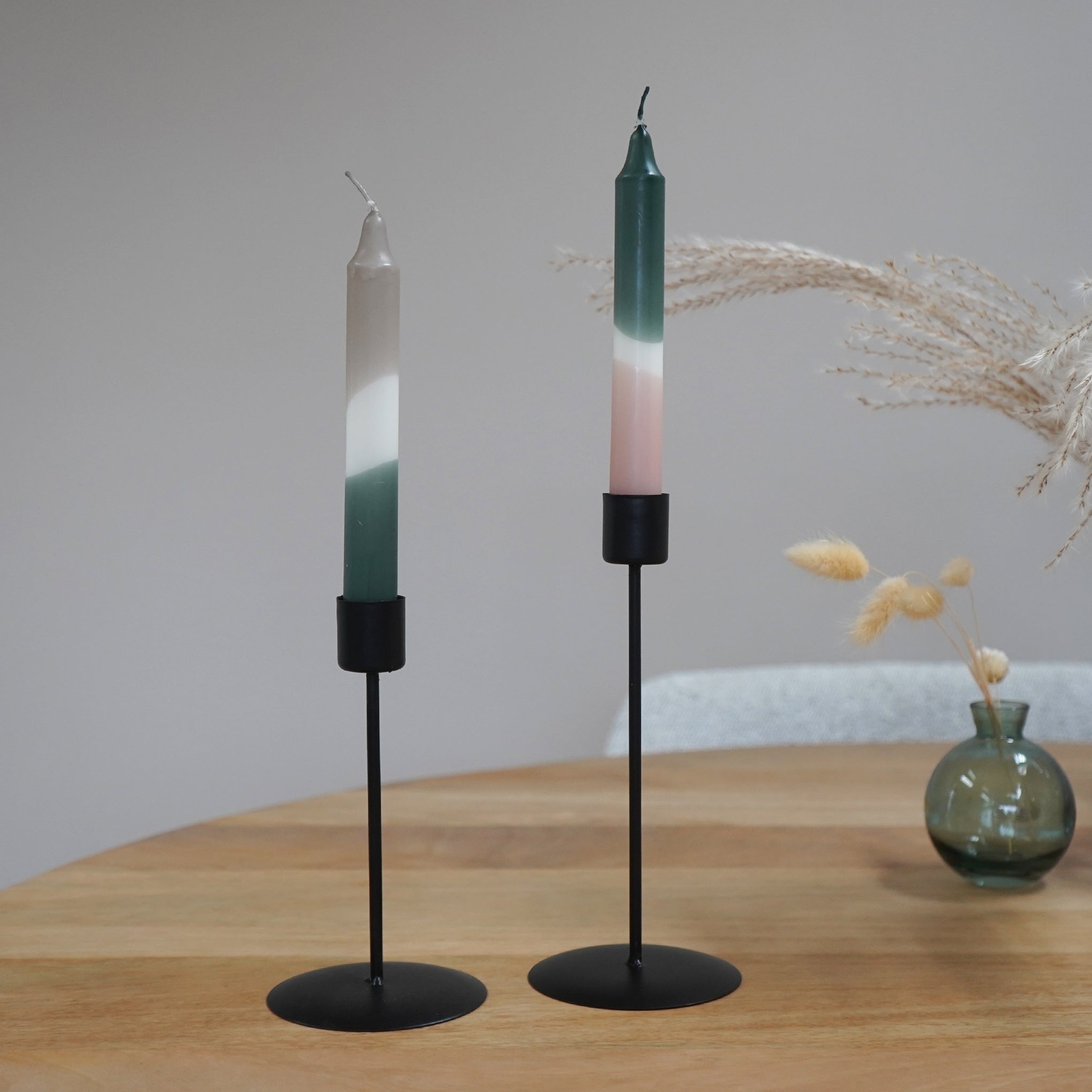 In de set zitten 2 metalen kaarsenhouders. De houders hebben beide hetzelfde design, maar hun lengte verschilt. Hierdoor creëer je een speels effect, terwijl de rustgevende uitstraling van de tafelaccessoires ook behouden blijft.