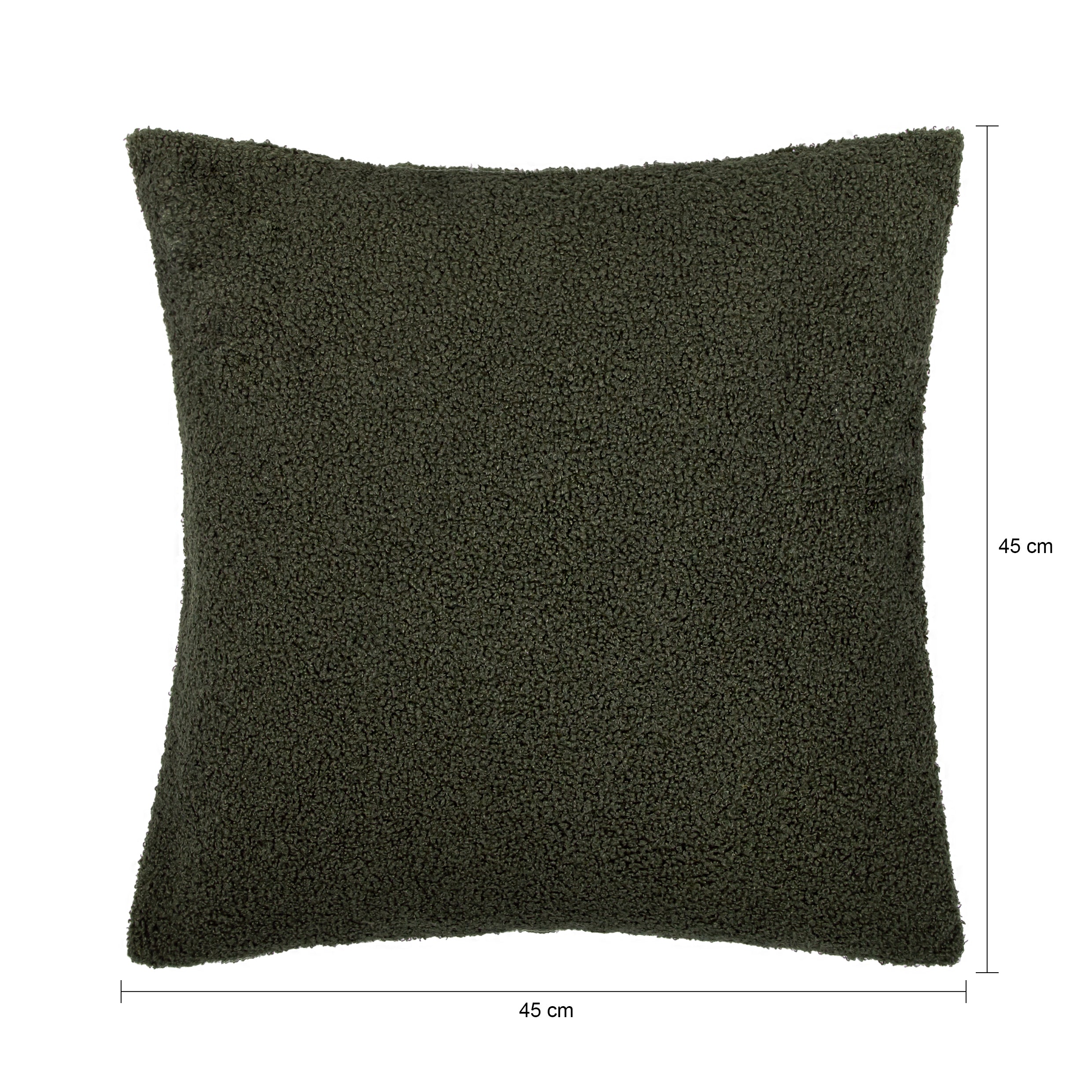 Voeg een vleugje warmte en stijl toe aan je woonruimte met de QUVIO teddy sierkussenhoes Geef je woonkamer een warme en uitnodigende uitstraling met de QUVIO sierkussenhoes teddy in een sfeervolle groene kleur. Deze sierkussenhoes combineert comfort met stijl en is de perfecte aanvulling voor op je bank of in je stoel. De kussenhoes is gemaakt van zacht teddymateriaal en wordt geleverd zonder vulling. Zo kun je jouw eigen vulling in de kussenhoes doen.
