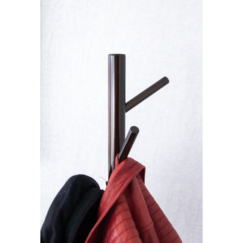 - De kapstok is gemaakt van hout. Deze materiaalkeuze zorgt ervoor dat het product niet al te veel opvalt, maar zeker wel gezien mag worden.