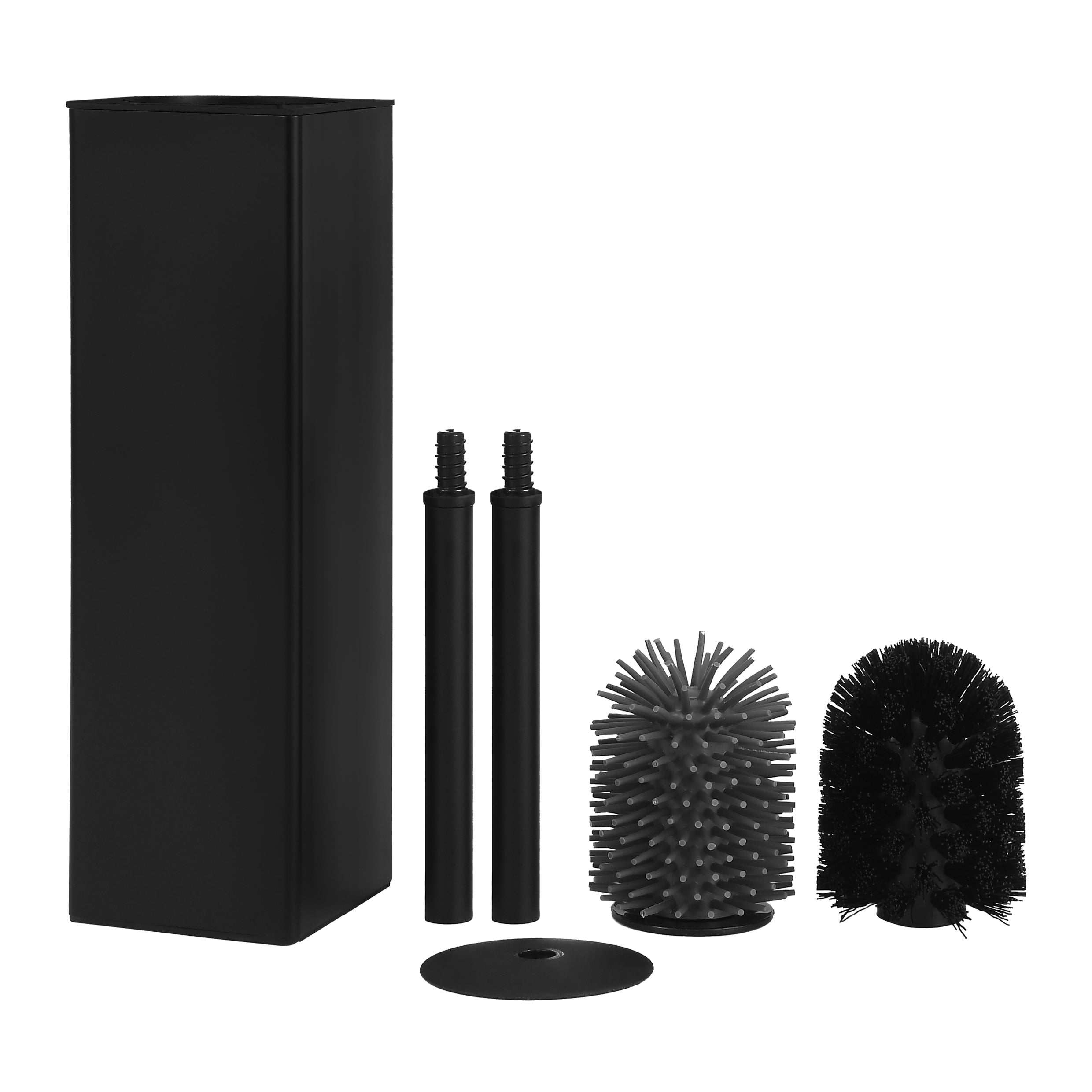 Bij deze toiletborstelhouder krijg je twee verschillende opzetborstels. De zwarte borstel is van kunststof, terwijl de grijze borstel van siliconen gemaakt is. Elk van deze materialen hebben zo hun eigen voor- en nadelen.