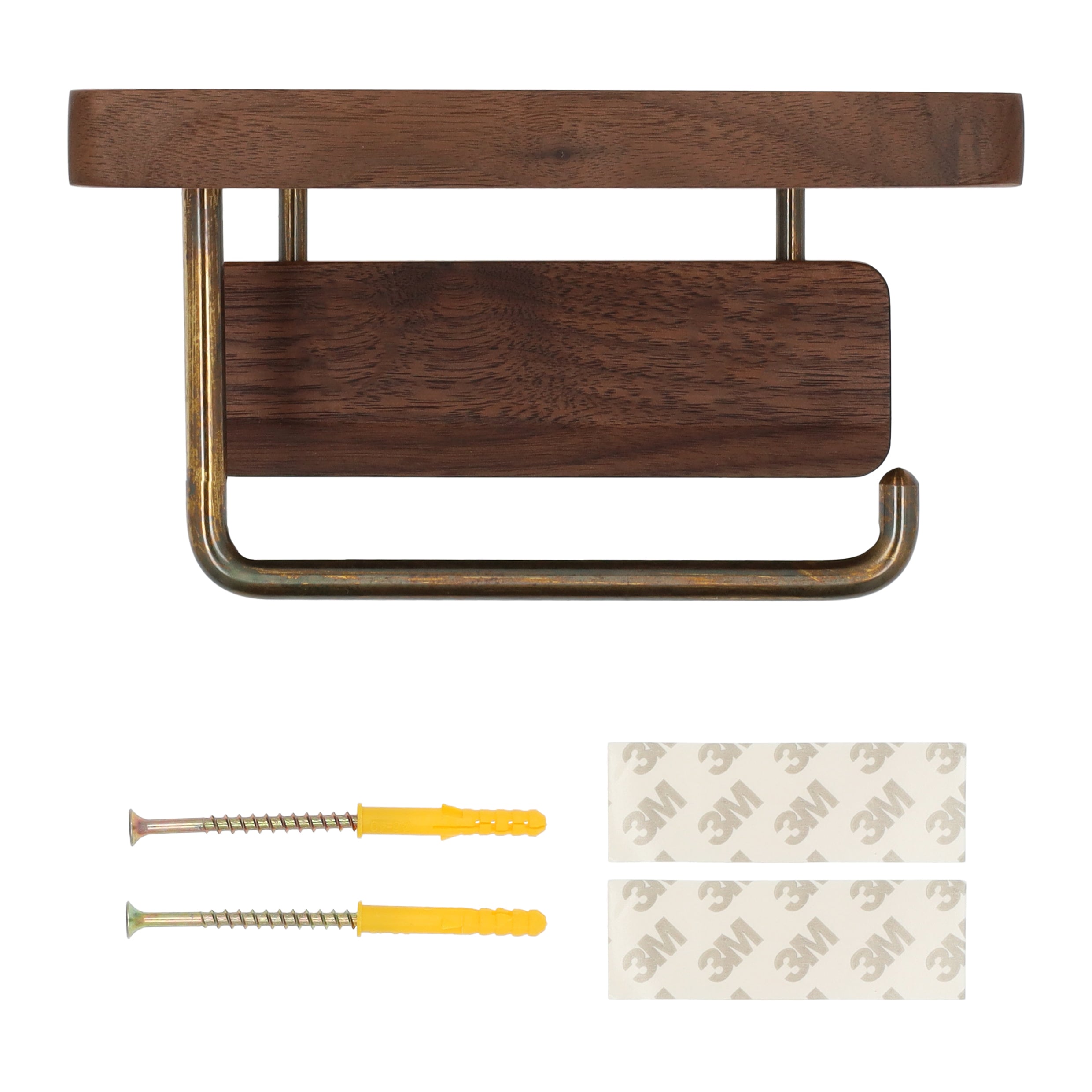 - Deze wcrolhouder van QUVIO is gemaakt van donkerbruin hout en heeft gouden details.
