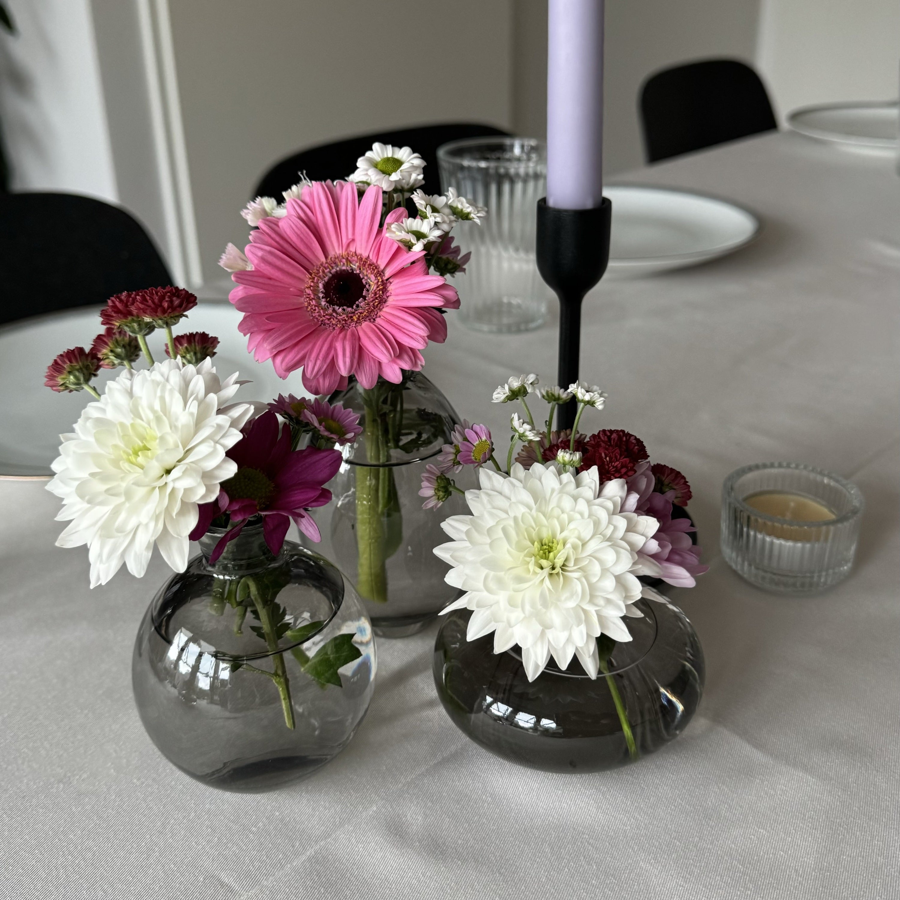 - Middelste vaasje: 7 x 9 cm (dxh)