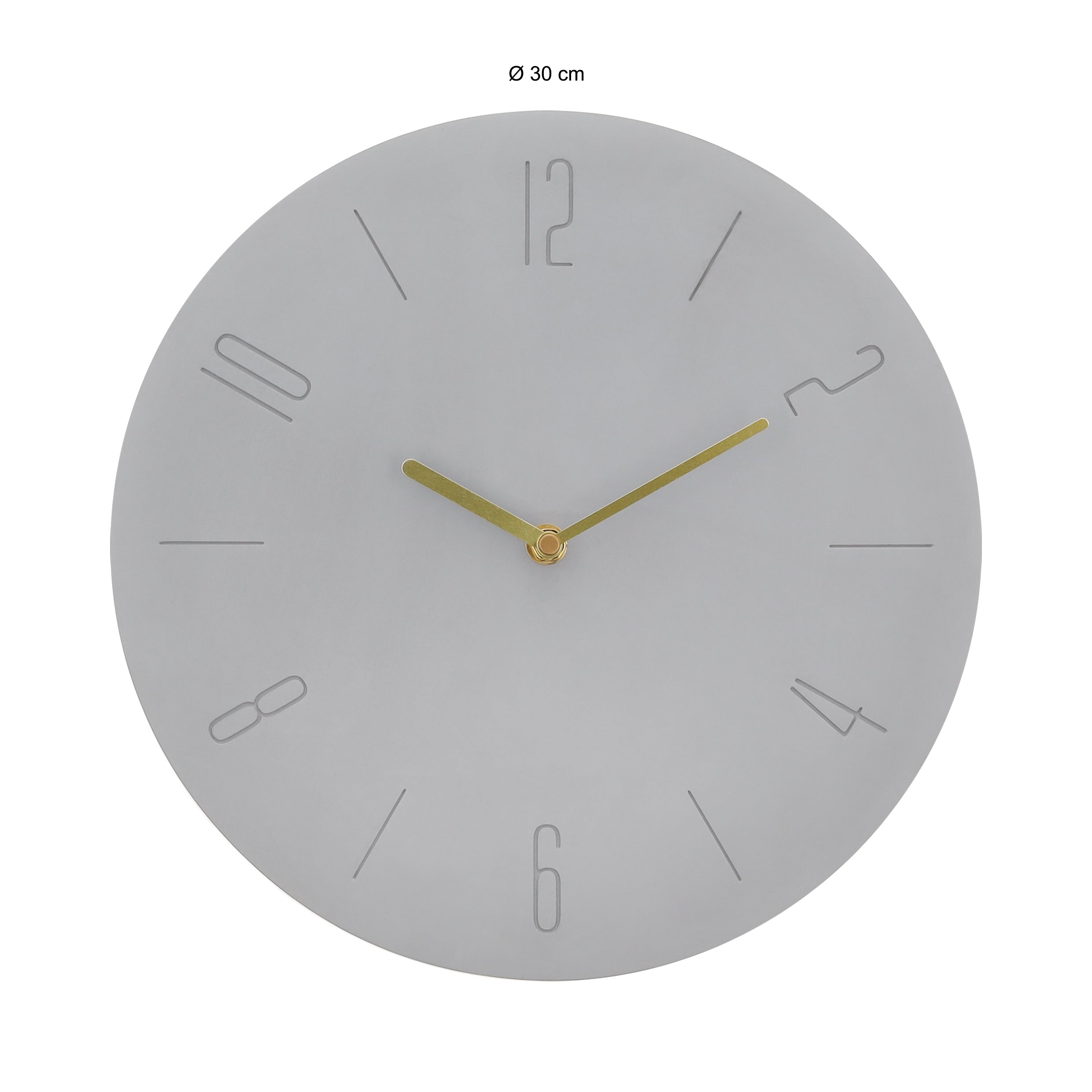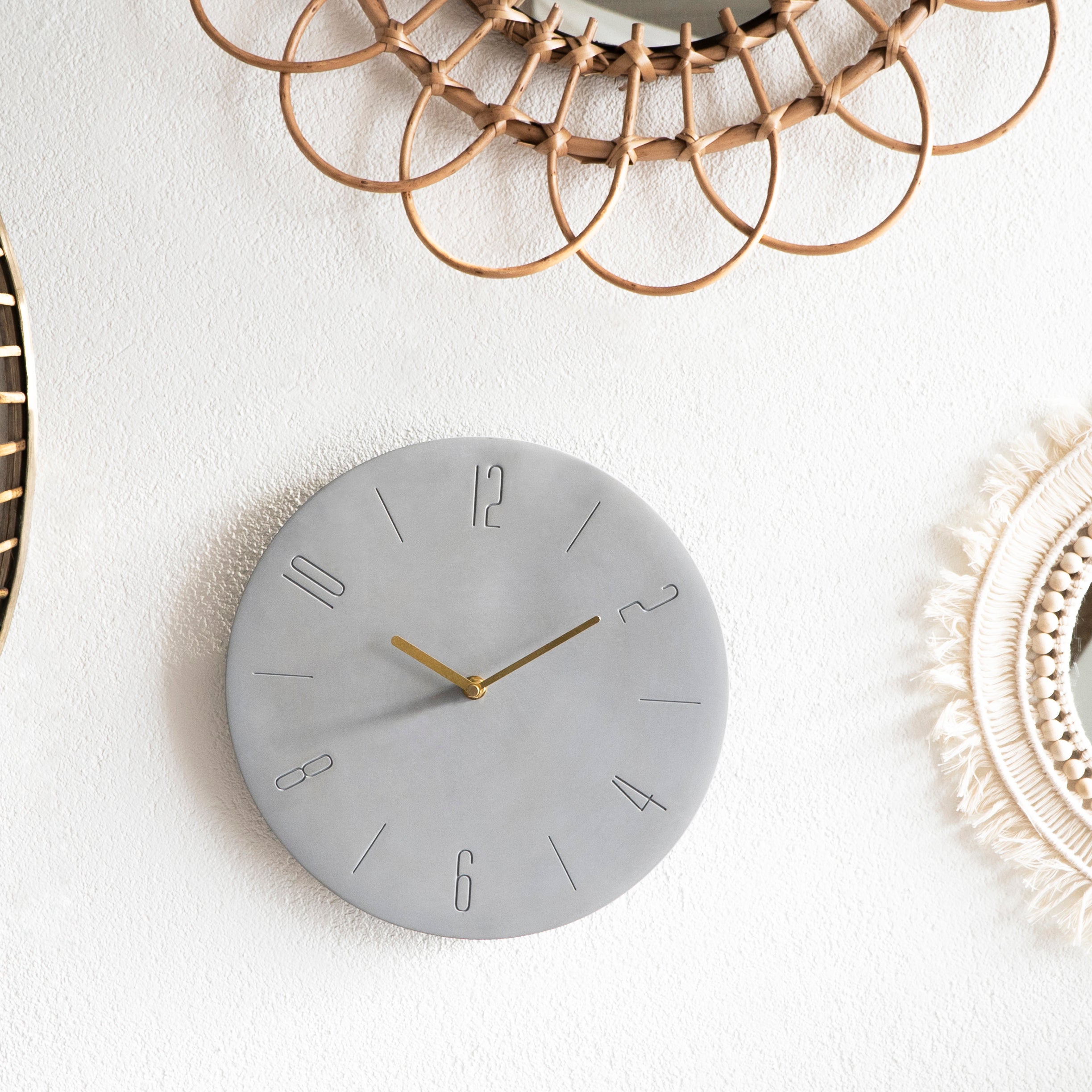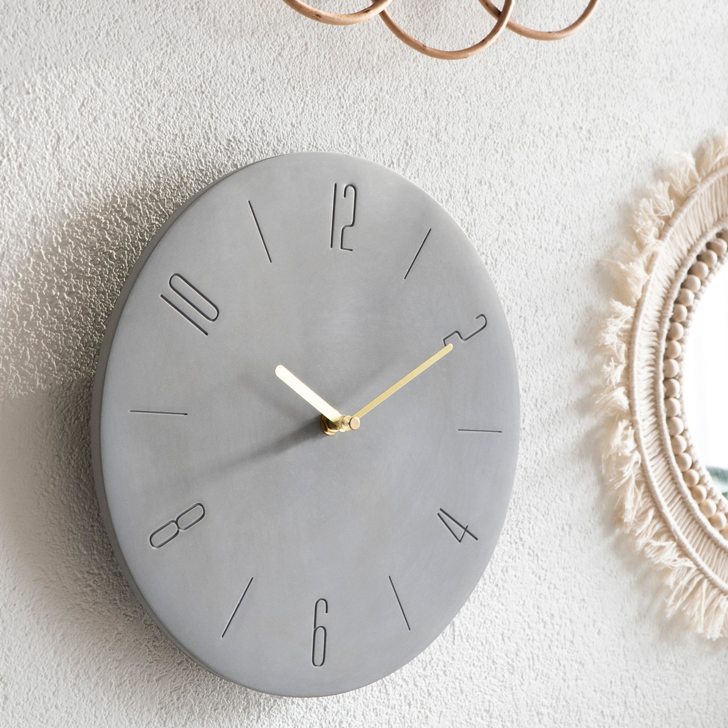 - Deze wandklok is analoog en is wat betreft het materiaal gemaakt van beton.