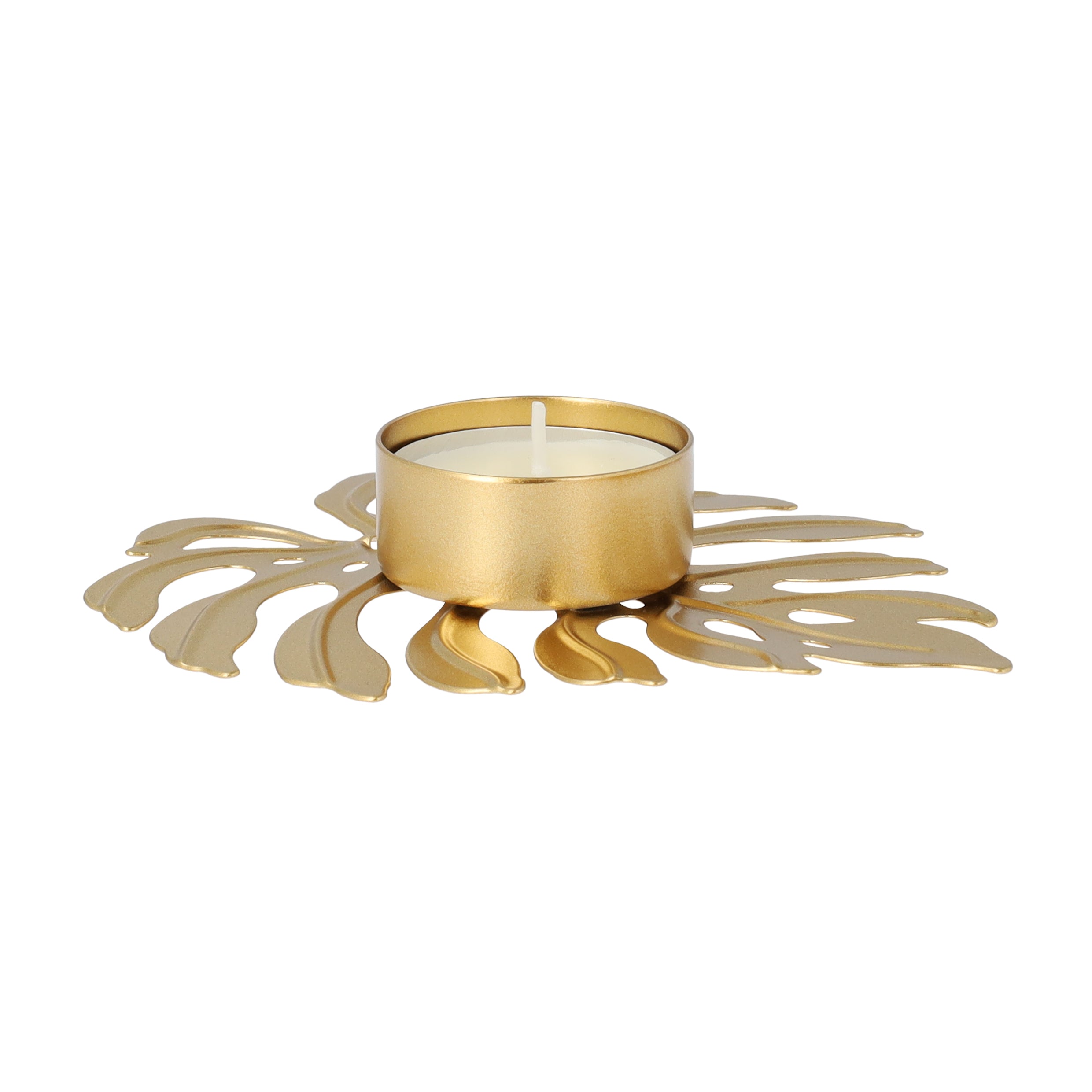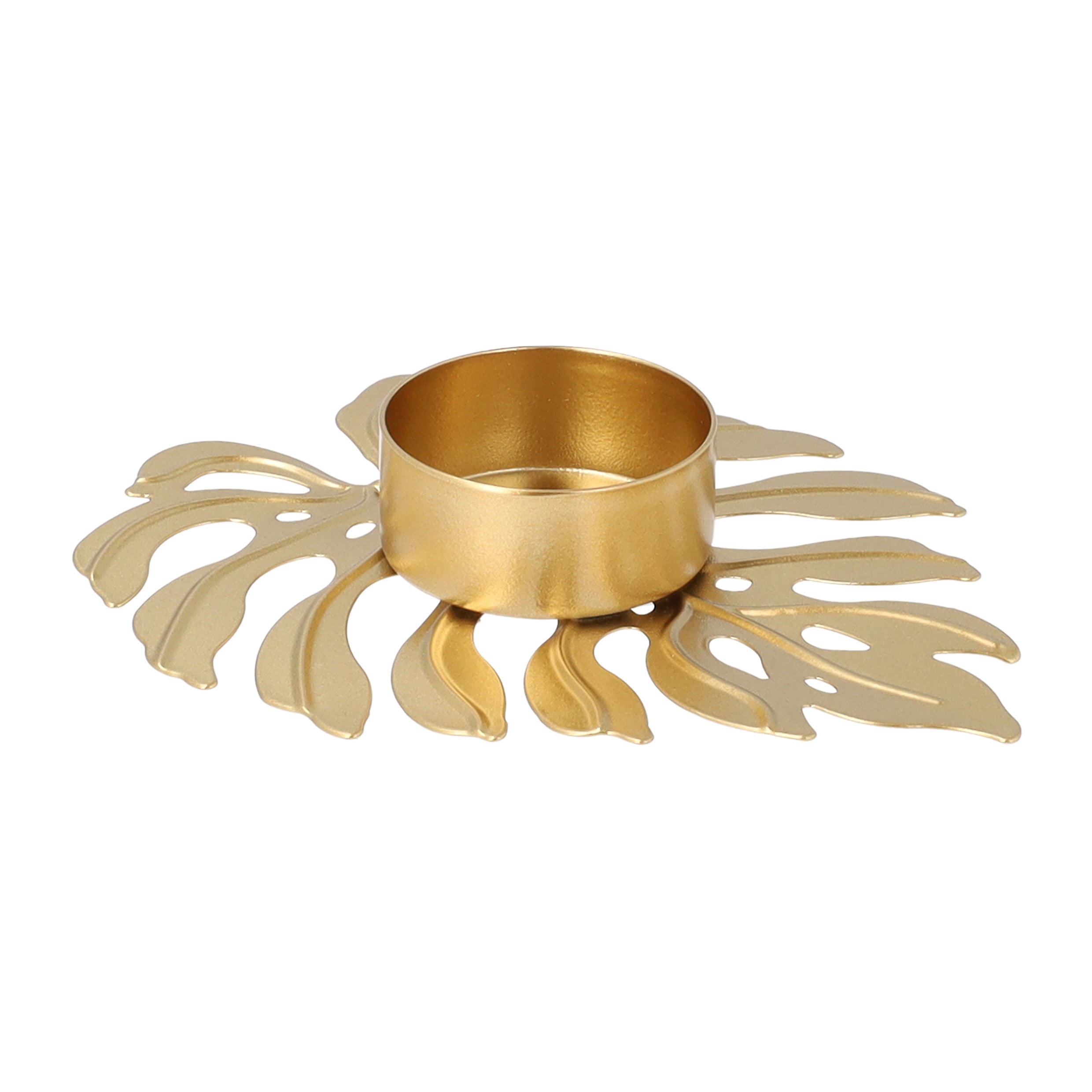 QUVIO Waxinelichthouder op een blad - 12,5 x 10 x 2 cm - Metaal - Goud