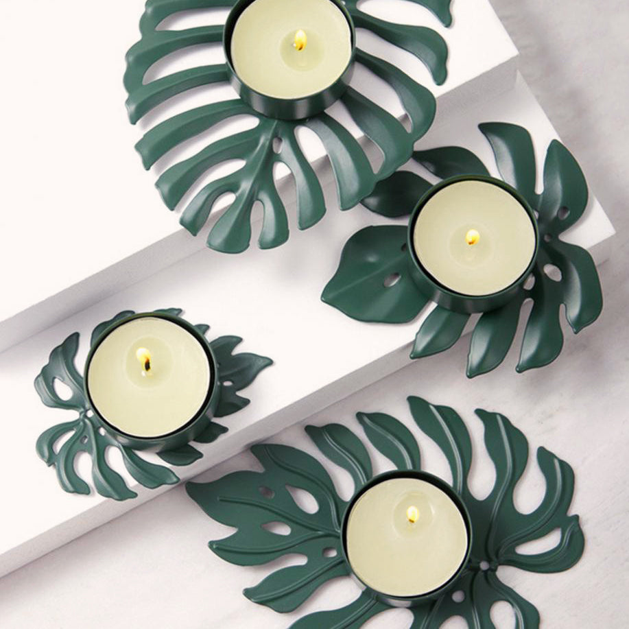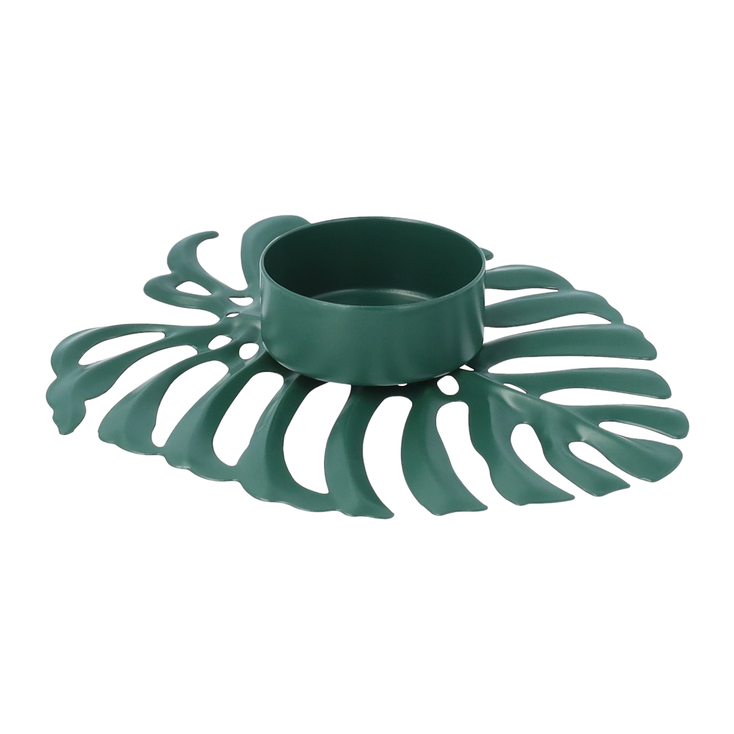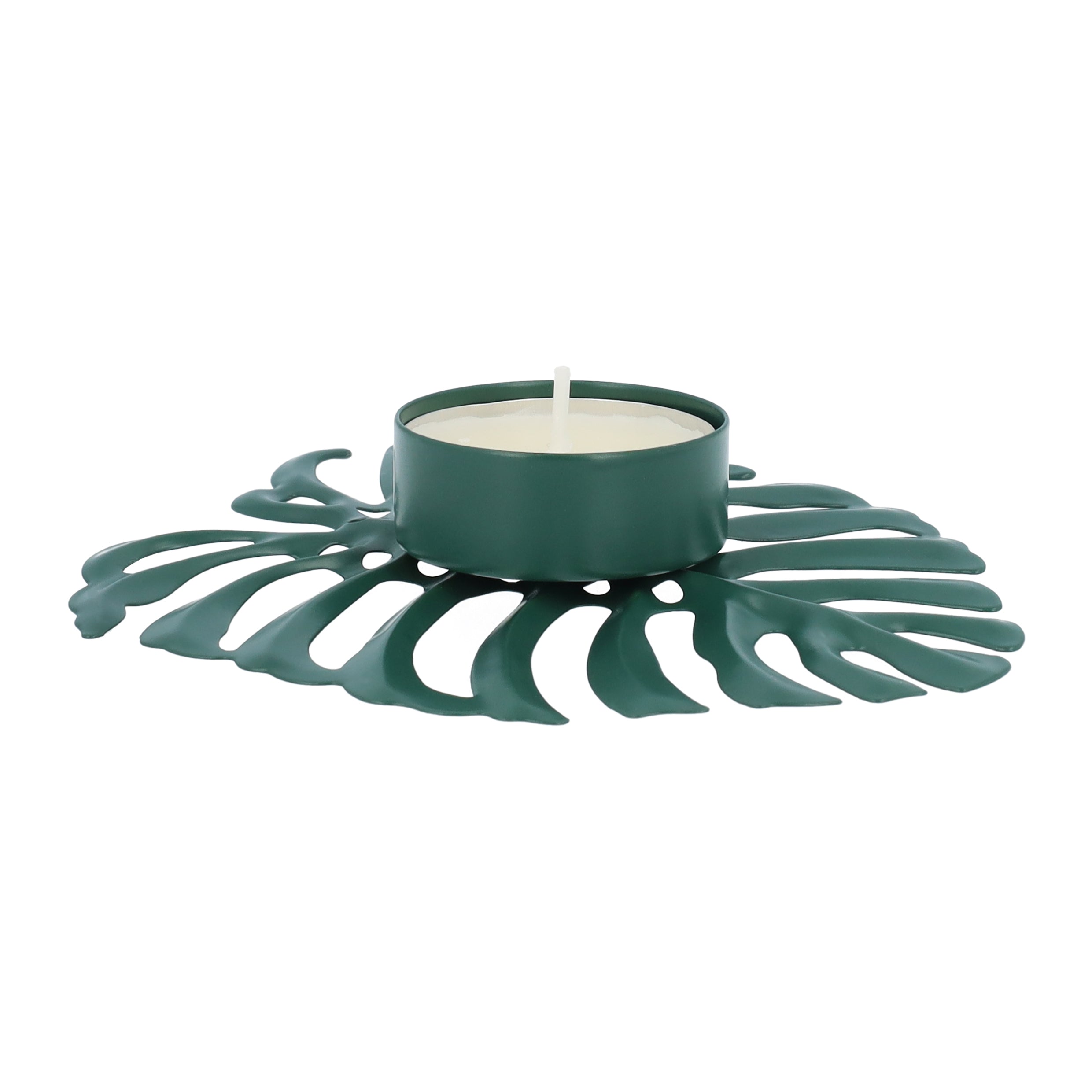 QUVIO Waxinelichthouder op een blad - 13 x 9,5 x 2 cm - Metaal - Groen