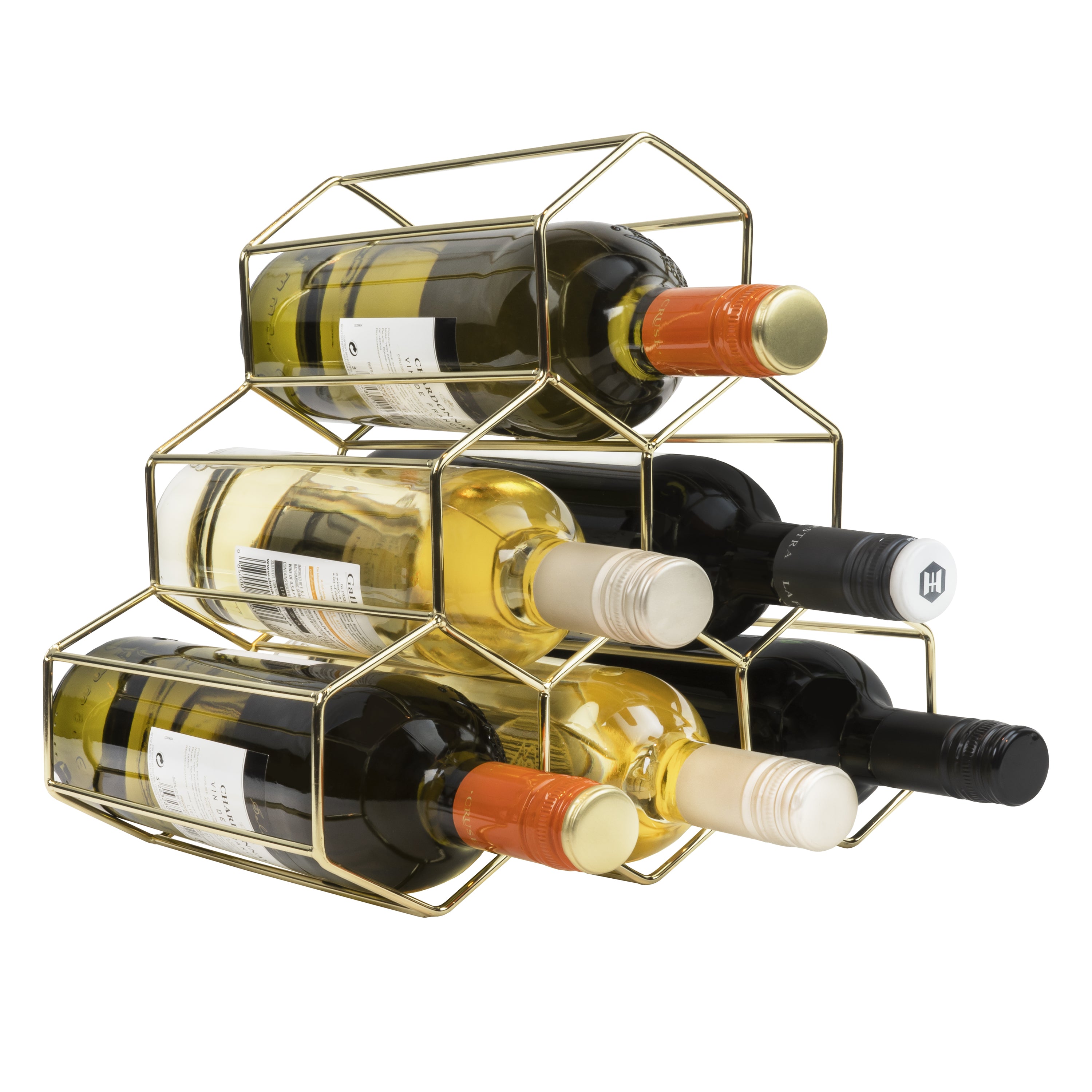 - Dit design biedt plek aan 6 flessen en is door het zeshoekig ontwerp op verschillende manieren neer te zetten.