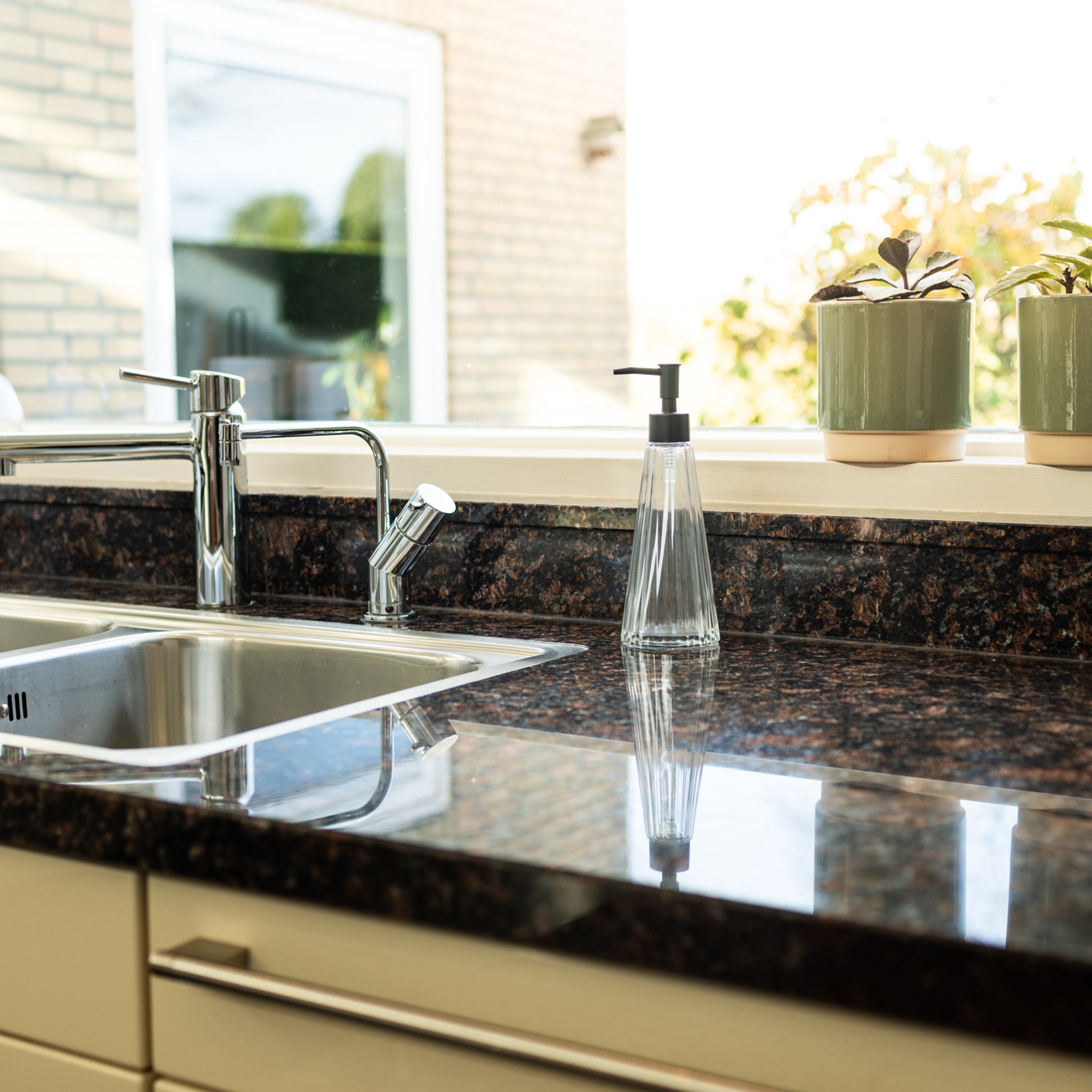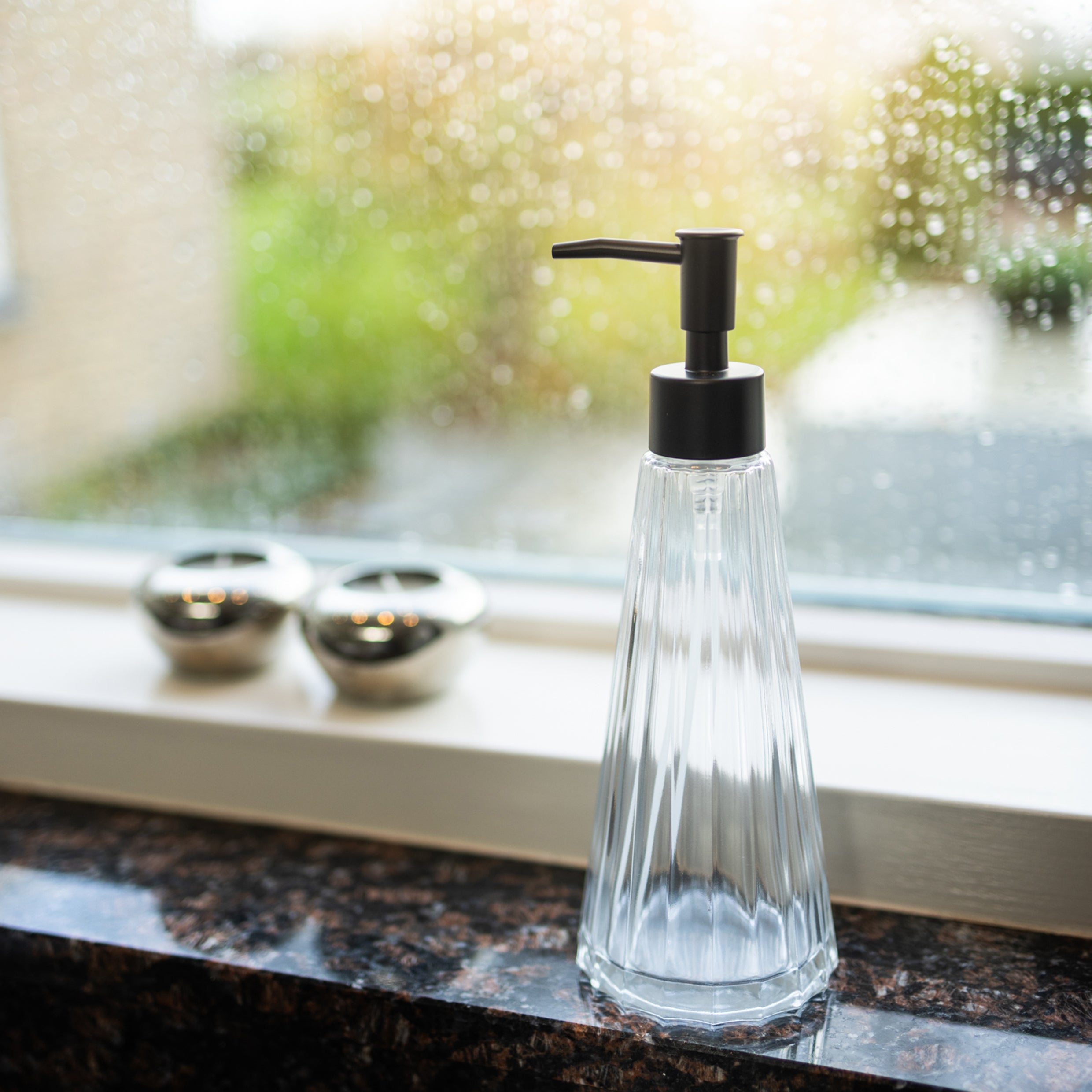 QUVIO-Zeepdispenser -Glas - 300 ml - Transparant met zwarte zeeppompje