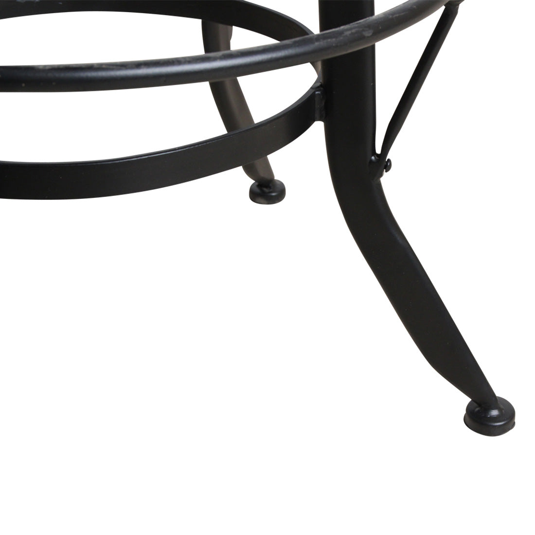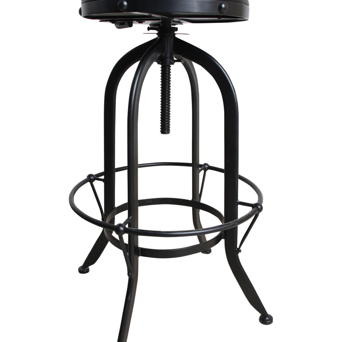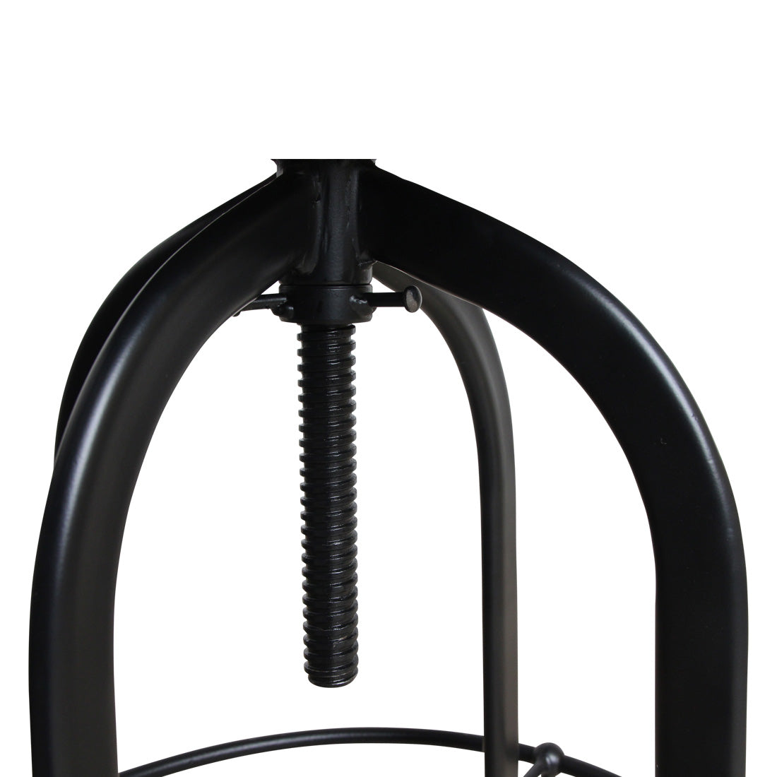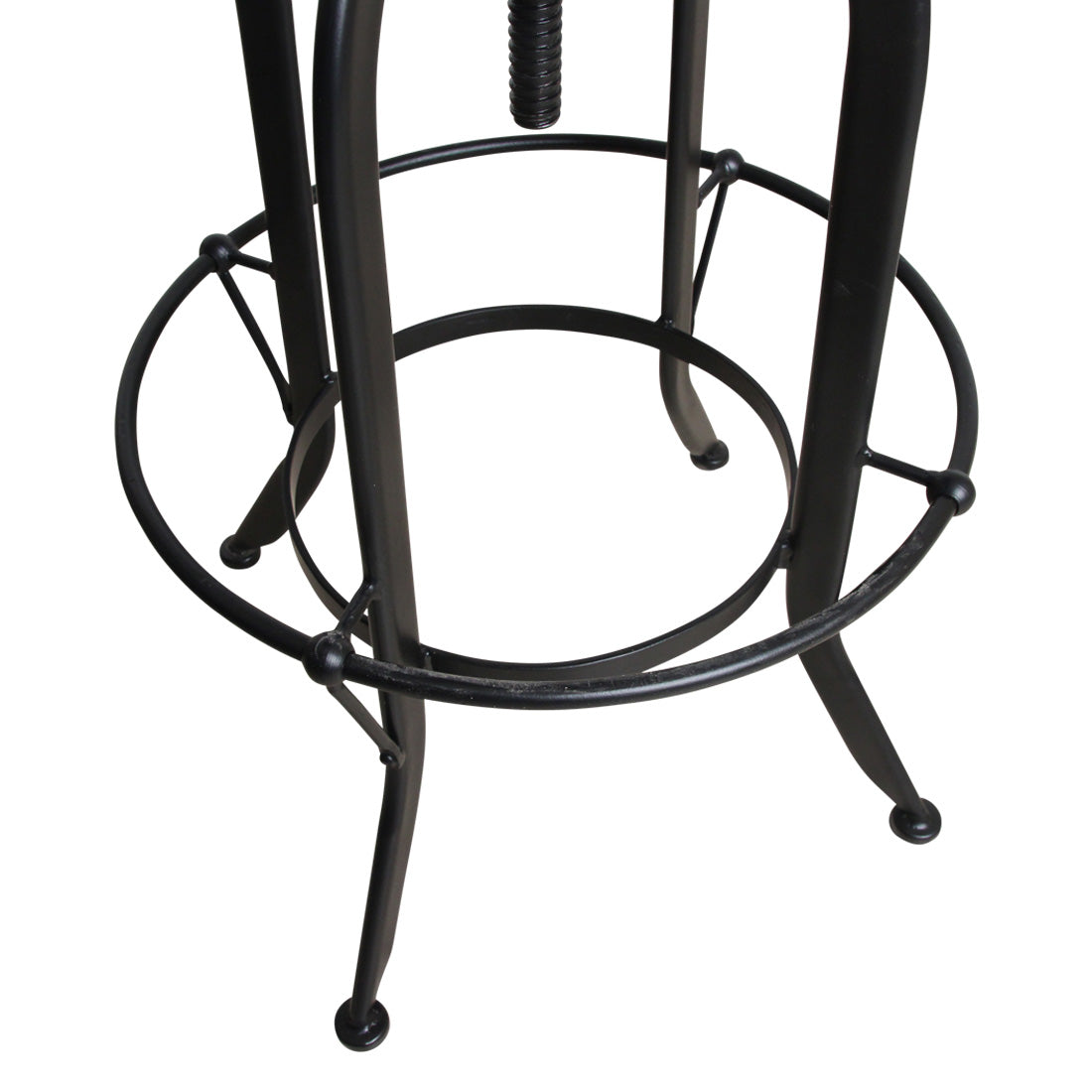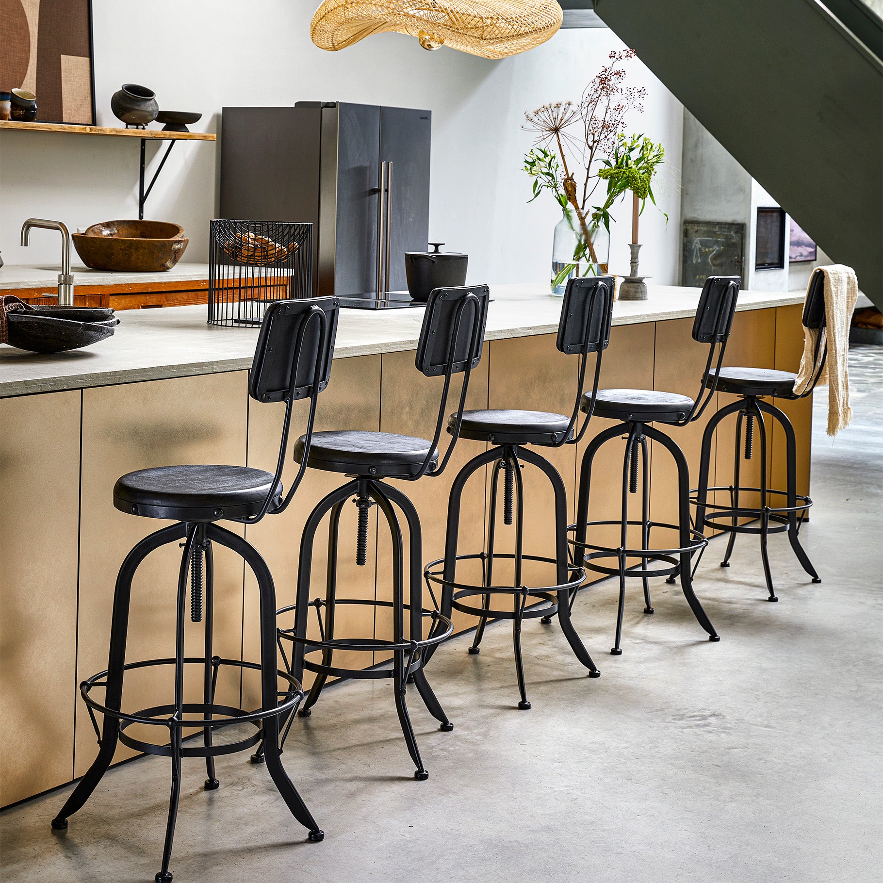 Zwarte industriële kruk met houten zitting en een onderstel gemaaktvan ijzer. De zitting van de kruk is in hoogte verstelbaar door naarboven te draaien. Het onderstel is voorzien van voetsteunen, zodat jefijn zit. Deze barkruk is ook verkrijgbaar in een acaciahoutenuitvoering. Vintage Mango: Dit product is gemaakt van een speciaal hardhoutsoort:mangohout uit India. Deze houtsoort is echt duurzaam omdat het eenbijproduct is van een al bloeiende industrie: mangofruit. Debomen groeien op grote schaal in India en rijpen snel: 15 jaar inplaats van bijvoorbeeld eiken (50-100 jaar). De vruchtproductie isgoed in de eerste periode van de boom. Naarmate het ouder wordt,neemt ook de fruitproductie af. Daarom is deze boom economisch minderwaardevol op de mangoplantages. De oplossing voor mangoboeren is dan:kappen en herplanten. Door deze manier van werken is het hout van demangoboom echt duurzaam. Na zijn leven als voedselproducent krijgthet hout een tweede leven als meubelstuk. De basis van mangohoutheeft een warme kleur, maar door de kleurvariaties in het hout kunnener afwijkingen zijn. Het geeft elk meubel een robuuste en uniekeuitstraling. Het hout heeft enkele zaagsnedemarkeringen die eenvintage twist toevoegen. Afwerking: Het mangohout is geschuurd en voorzien van een sealer enwax laag ter bescherming tegen watervlekken. Materiaal: Mangohout, ijzer Onderhoud: -Af en toe afnemen meteen licht vochtige of droge stofdoek zonder zware stiksels, omkrassen te voorkomen. -Vermijd alle schoonmaakgereedschapmet een ruw oppervlak. -Vermijd polijst- ofreinigingsmiddelen die siliconen bevatten, dit omdat deze na verloopvan tijd natuurlijk hout kunnen laten uitdrogen. -Gebruikgeen schoonmaakmiddelen of schoonmaakproducten die ammoniak bevatten. -Wrijf wax in het hout voor een mooie glans en eennatuurlijke beschermende laag. Dit voorkomt ook dat het houtuitdroogt. -Minerale (hout-)olie kan met een doek wordenaangebracht. Dit zal in de loop van de tijd een beschermend oppervlakproduceren.