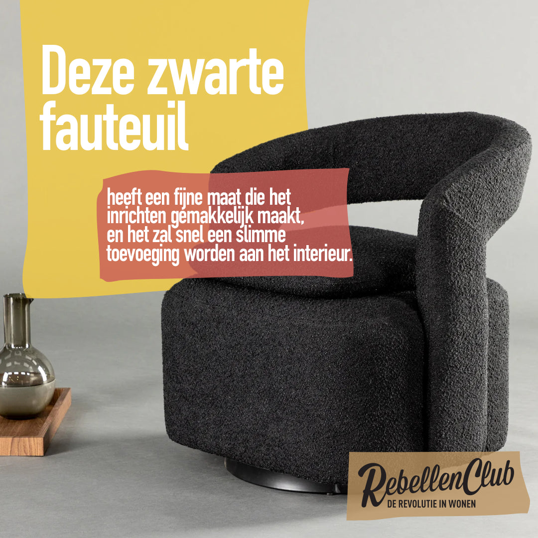 Rebellenclub Akando Fauteuil - Zwart bouclé