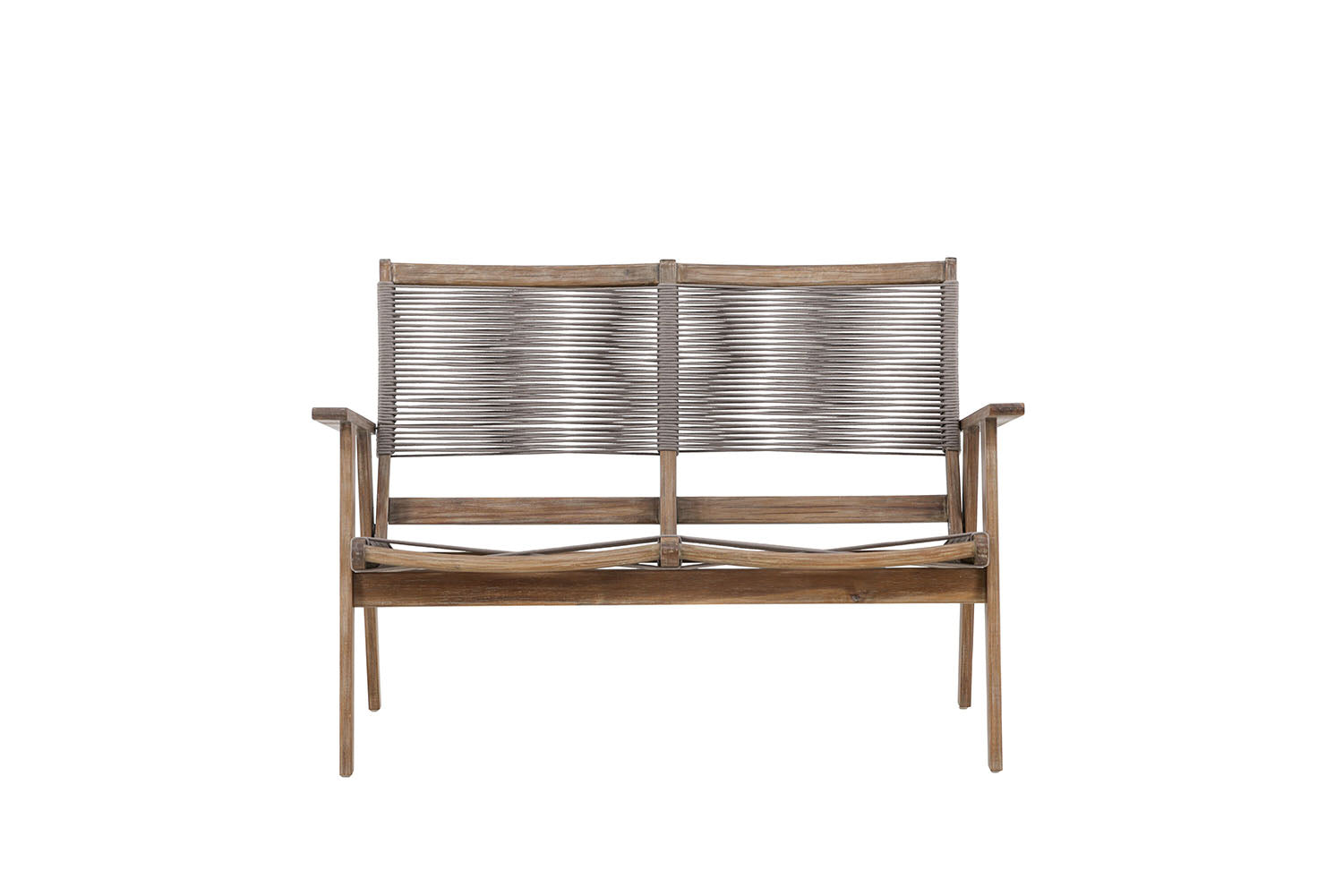 - Geniet van een comfortabele en ontspannen zitting met de grijze touwbekleding van Tuinbank Aros.