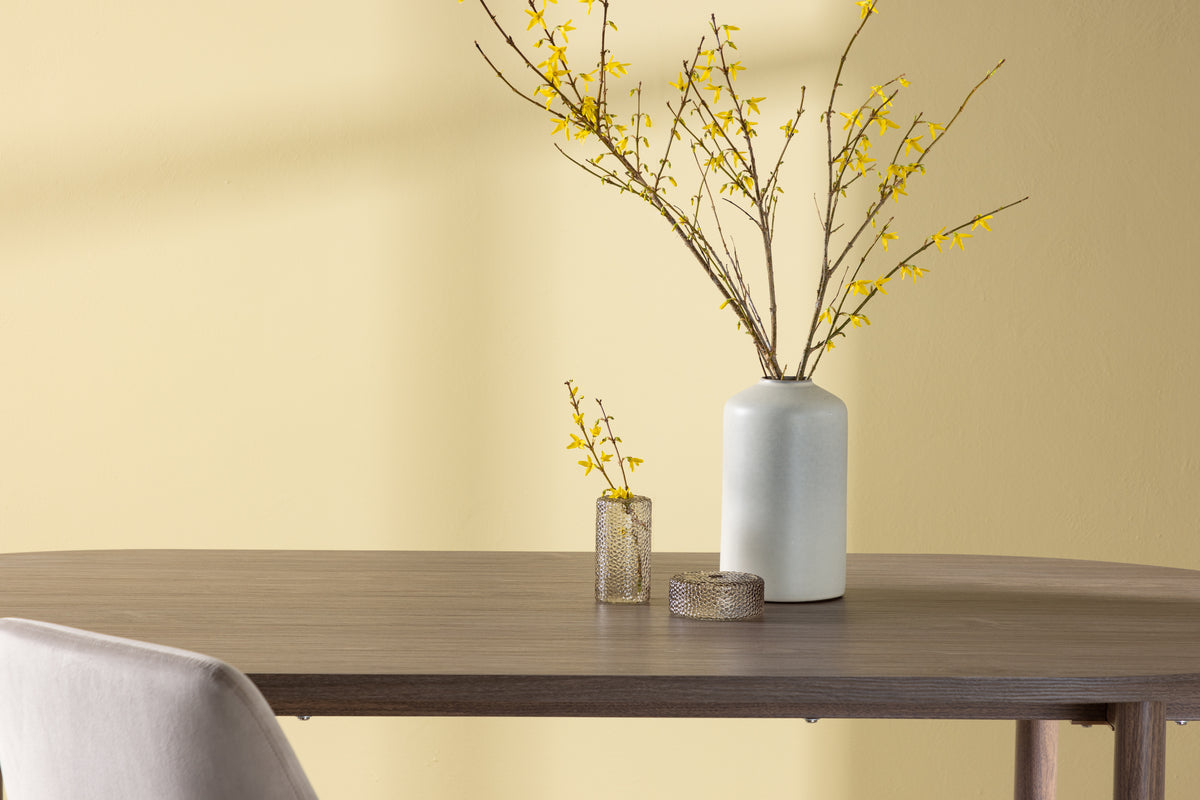 De cilindrische poten geven de tafel een eigentijds karakter en bieden tegelijkertijd een solide basis. Deze eetkamertafel belichaamt perfecte harmonie tussen klassiek en modern design, en zal ongetwijfeld het middelpunt worden van warme en gastvrije bijeenkomsten.