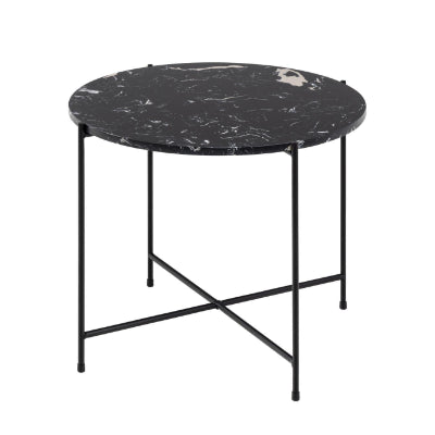 Bijzettafel Romo beschikt over een prachtig zwart marmeren blad van 52 diameter en zwarte stalen frame. Plaats hem naast je bank of fauteuil voor de tijdschriften, planten of je drinken. Bijzettafels zorgen namelijk voor een fijne en praktische opvulling van het interieur. Wist je dat Romo er ook in een kleinere maat beschikbaar is, zo kan je een leuke mix maken voor in de woonkamer.