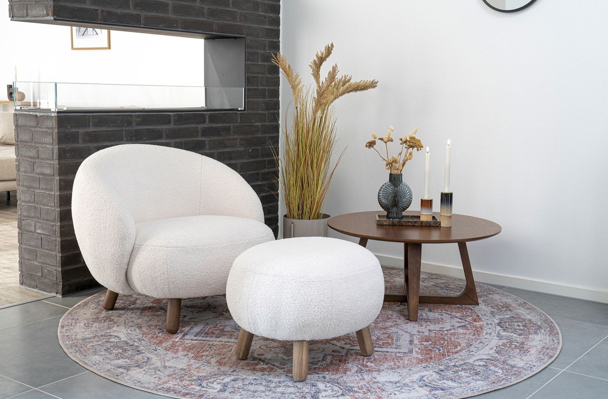 Dit Bilby Poefje is perfect om je benen op te laten rusten na een lange dag! Dit prachtige voetenbankje, bekleed met zachte kunstschapenvacht in helder wit en voorzien van elegante walnootlook poten, voegt een vleugje luxe en ontspanning toe aan elke ruimte. Combineer hem met de Bilby Fauteuil!