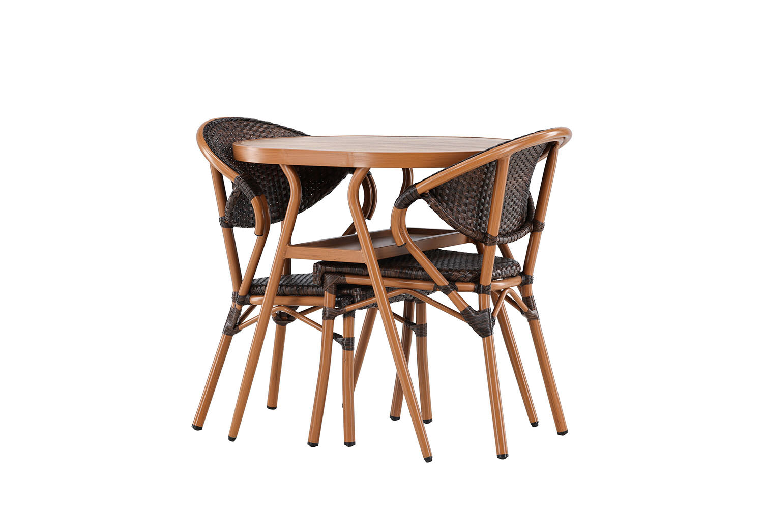 Maak een uitnodigende en comfortabele plek met tuinset Blaze, bestaande uit twee stoelen en een tafel. Deze set in een warme bruine tint heeft een veelzijdig ontwerp dat past bij verschillende stijlen. Hij is gemakkelijk te verplaatsen en te onderhouden. De functionele tafel biedt een extra oppervlak onder het tafelblad. Met tuinset Blaze creëer je een harmonieuze en uitnodigende sfeer waar je in stijl kunt ontspannen.