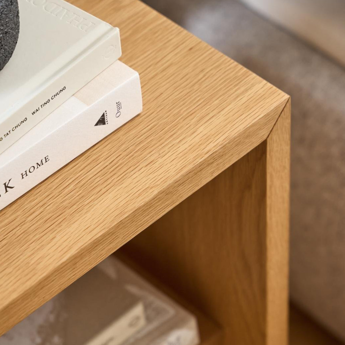 De open compartiment onder het tafelblad biedt extra opbergruimte voor je favoriete boek of accessoires die je graag bij de hand hebt.