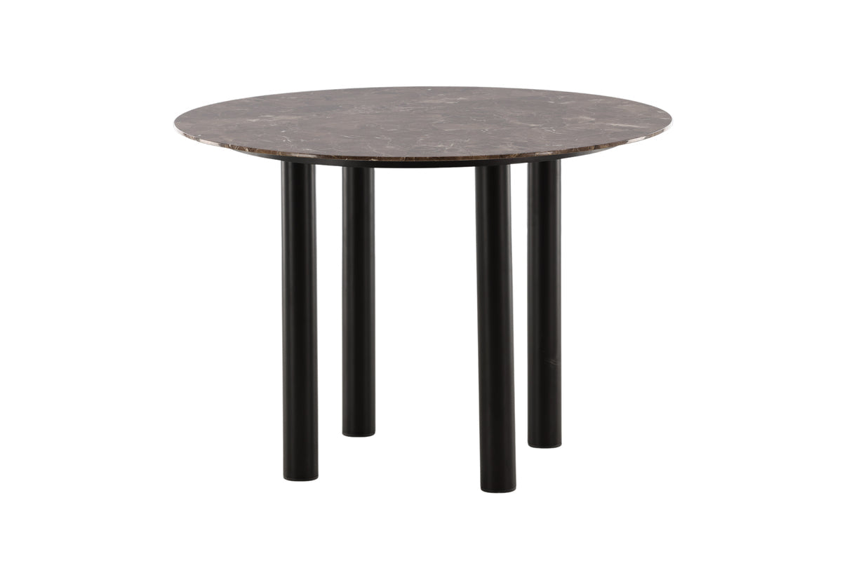 De vier tafelpoten zijn cilindrisch en gemaakt van zwart gekleurd staal. Een ronde eettafel is altijd perfect op gezelligheid te creëren tijdens diners. De vier slanke poten dragen niet alleen bij aan de stevigheid van de tafel, maar geven ook een gevoel van ruimtelijkheid aan de omgeving.