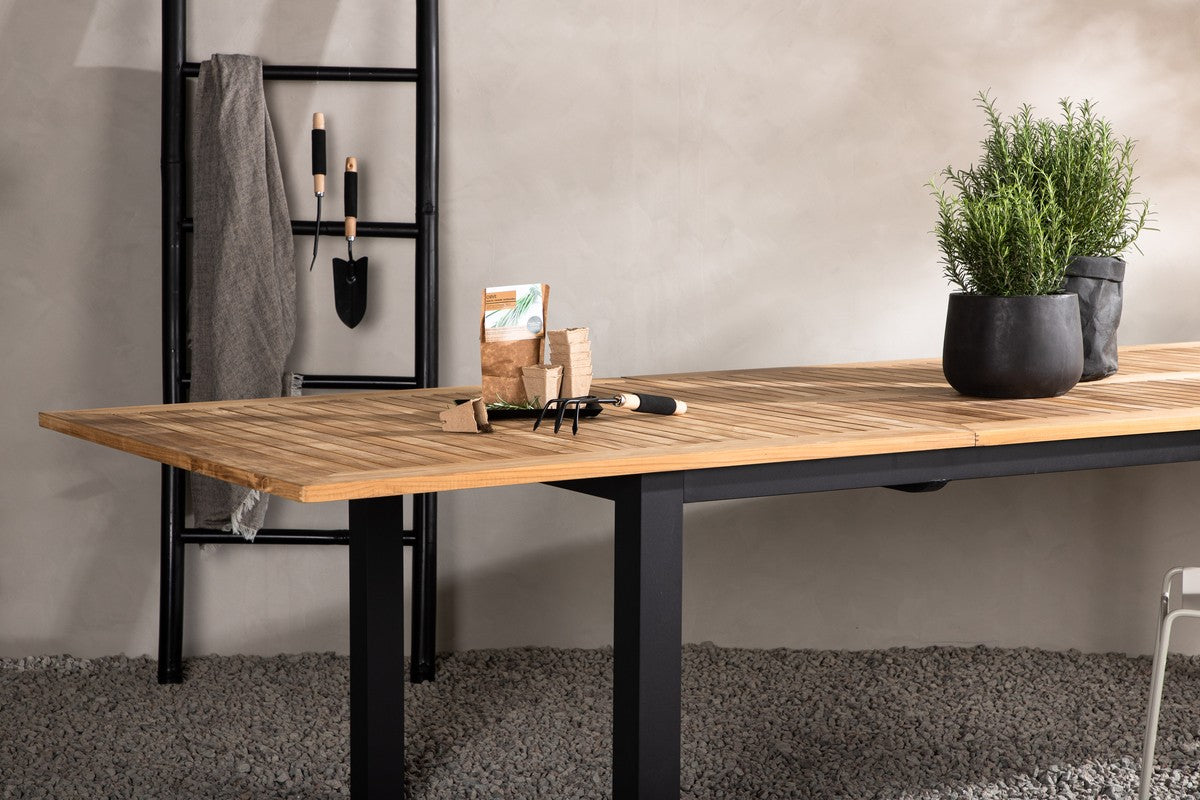 Stijlvol, modern en tijdloos, De Castor Tuintafel is een echte blikvanger voor je terras. Dankzij het uitschuifbare ontwerp geniet je moeiteloos van zowel knusse diners als gezellige etentjes met een groter gezelschap. Het warme teakhouten tafelblad en het strakke zwarte metalen onderstel geven de tafel een verfijnde en moderne uitstraling. Perfect voor lange, sfeervolle zomeravonden in de buitenlucht!