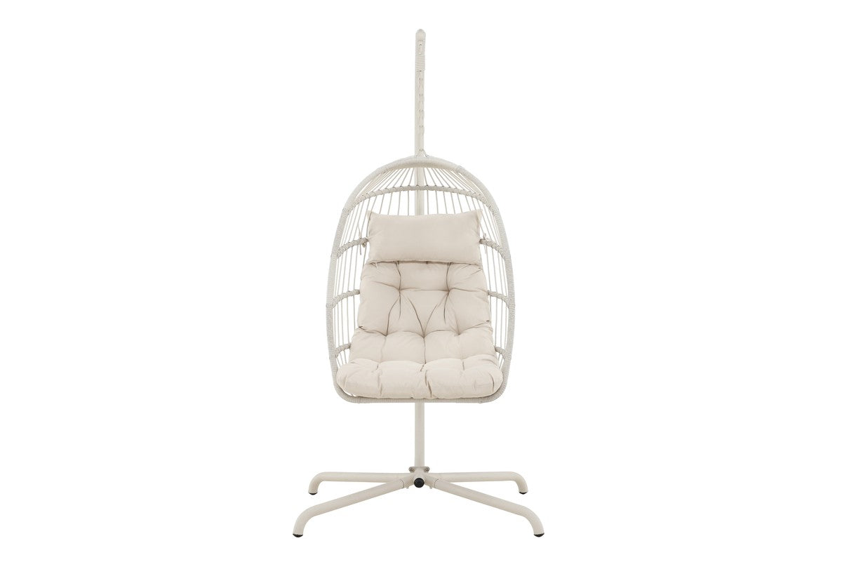 De Corallia hangstoel is de perfecte keuze om een ontspannen oase te creëren in je tuin of op je terras. Het stijlvolle ontwerp combineert een robuuste stalen constructie met duurzame touwen, wat zorgt voor zowel stevigheid als een moderne uitstraling. De beige kleur geeft de stoel een zachte touch die naadloos past in elke buitenruimte.