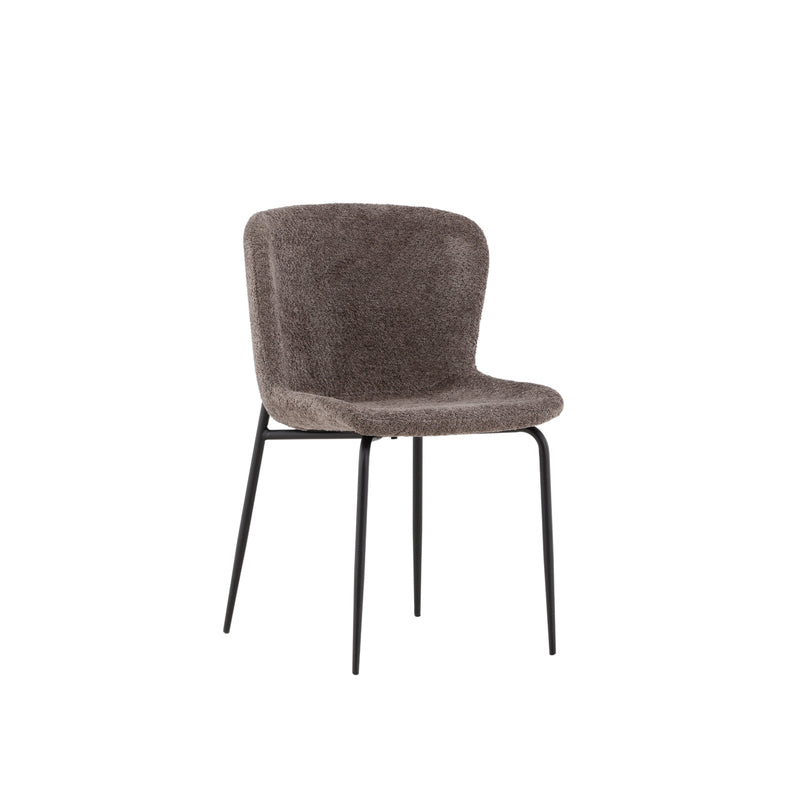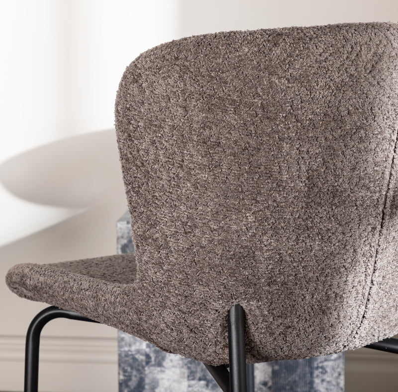 Eetkamerstoel Drammen die zowel trendy als comfortabel is! Creëer een uitnodigende sfeer in huis met deze zachte eetkamerstoel in Scandinavisch design. De stoel is volledig gekleed in grijze faux fur stof met stijlvolle smalle stoelpoten in zwart metaal. De licht afgeronde rug en het zachte stof zorgen voor extra zitcomfort. Eetkamerstoel Drammen is ook in een beige teddy stof verkrijgbaar!