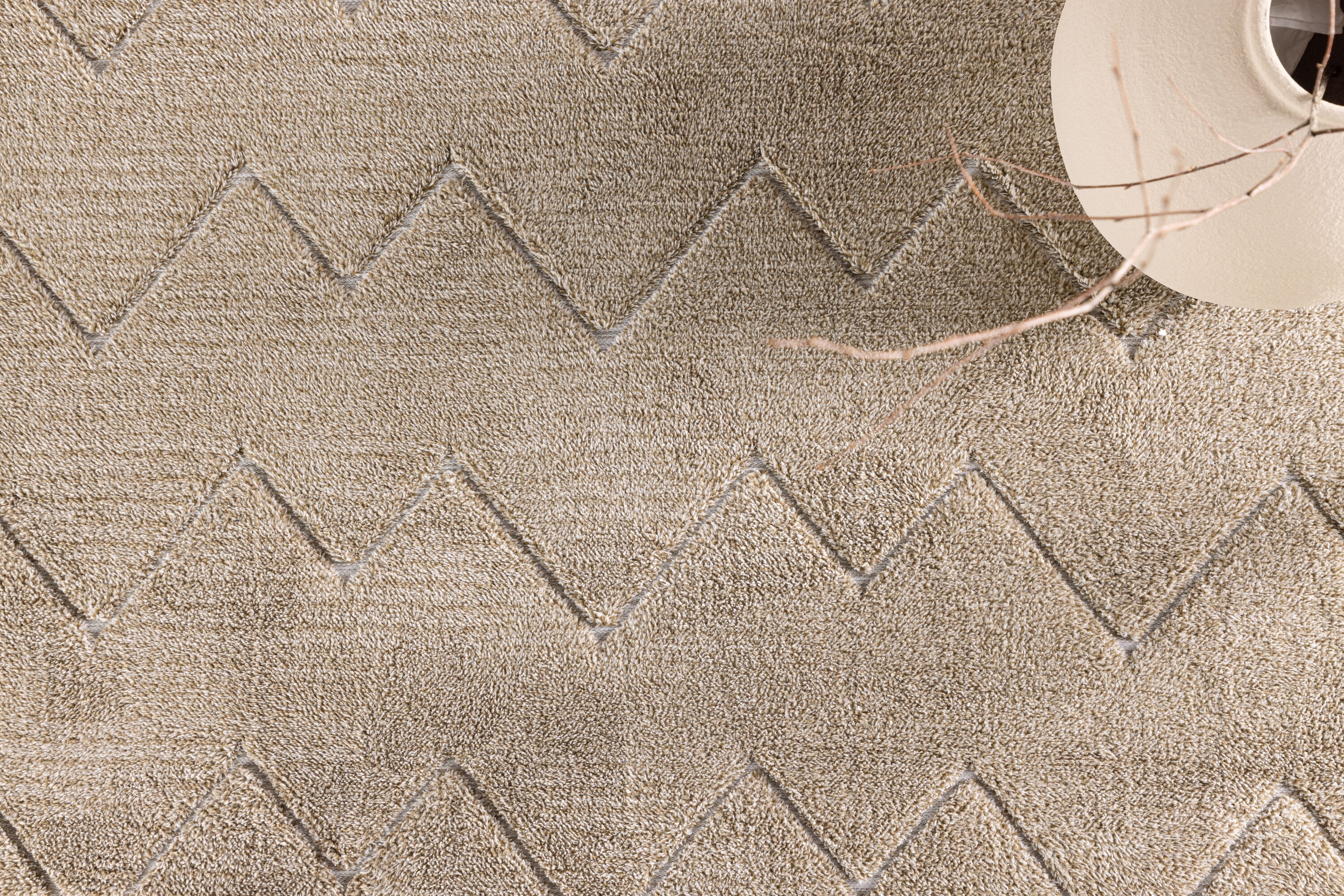 - Het strakke ontwerp met een zigzagpatroon geeft het tapijt een moderne uitstraling en behoudt tegelijkertijd zijn tijdloze charme.