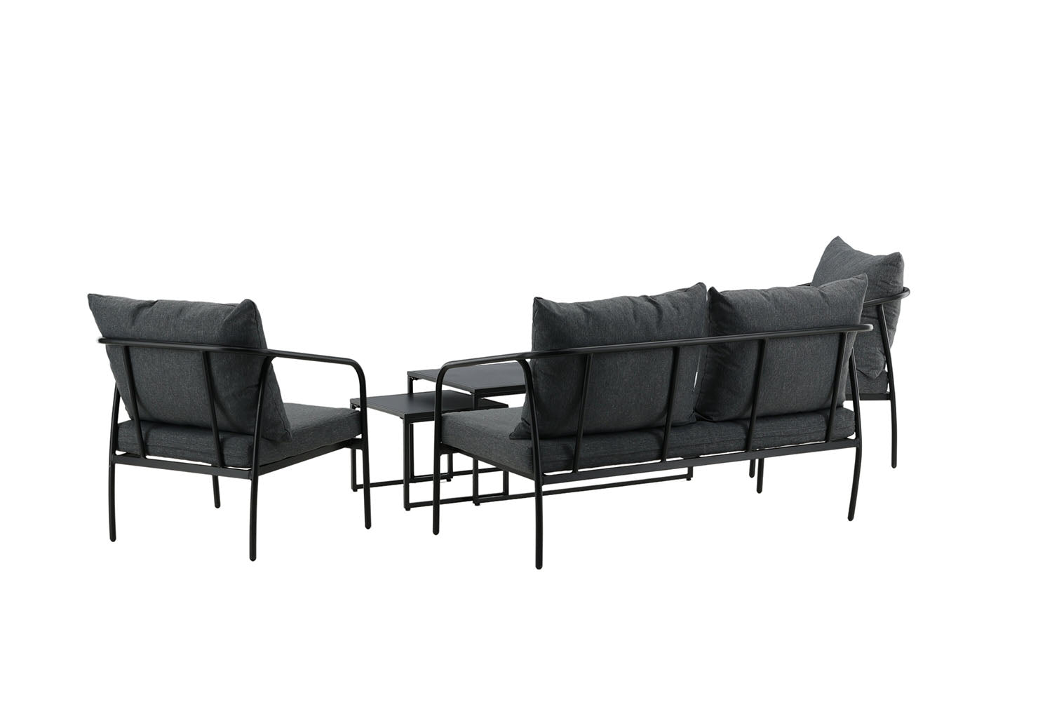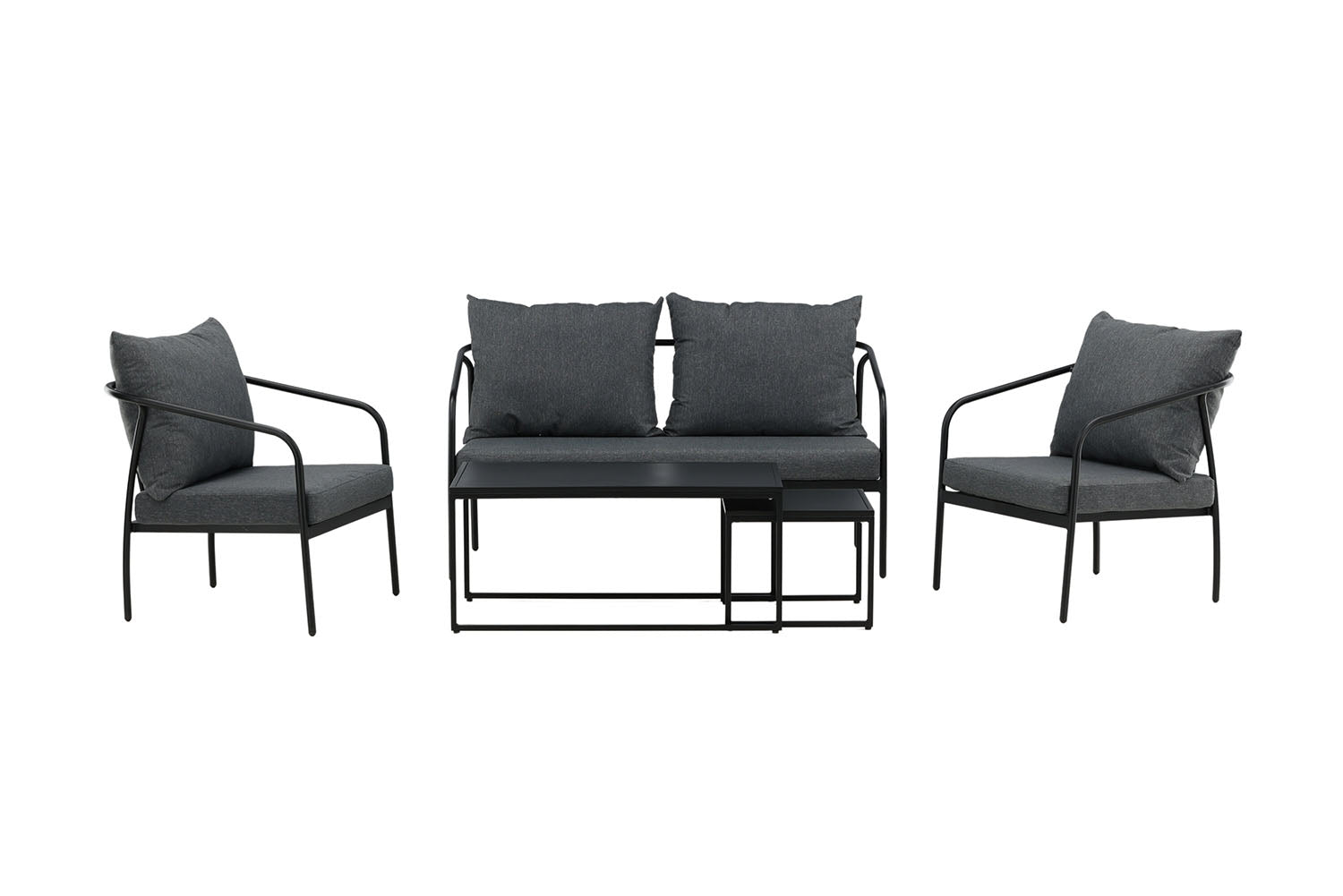 - Geniet van de strakke Noordse vormen en het zwarte stalen frame van deze loungeset.