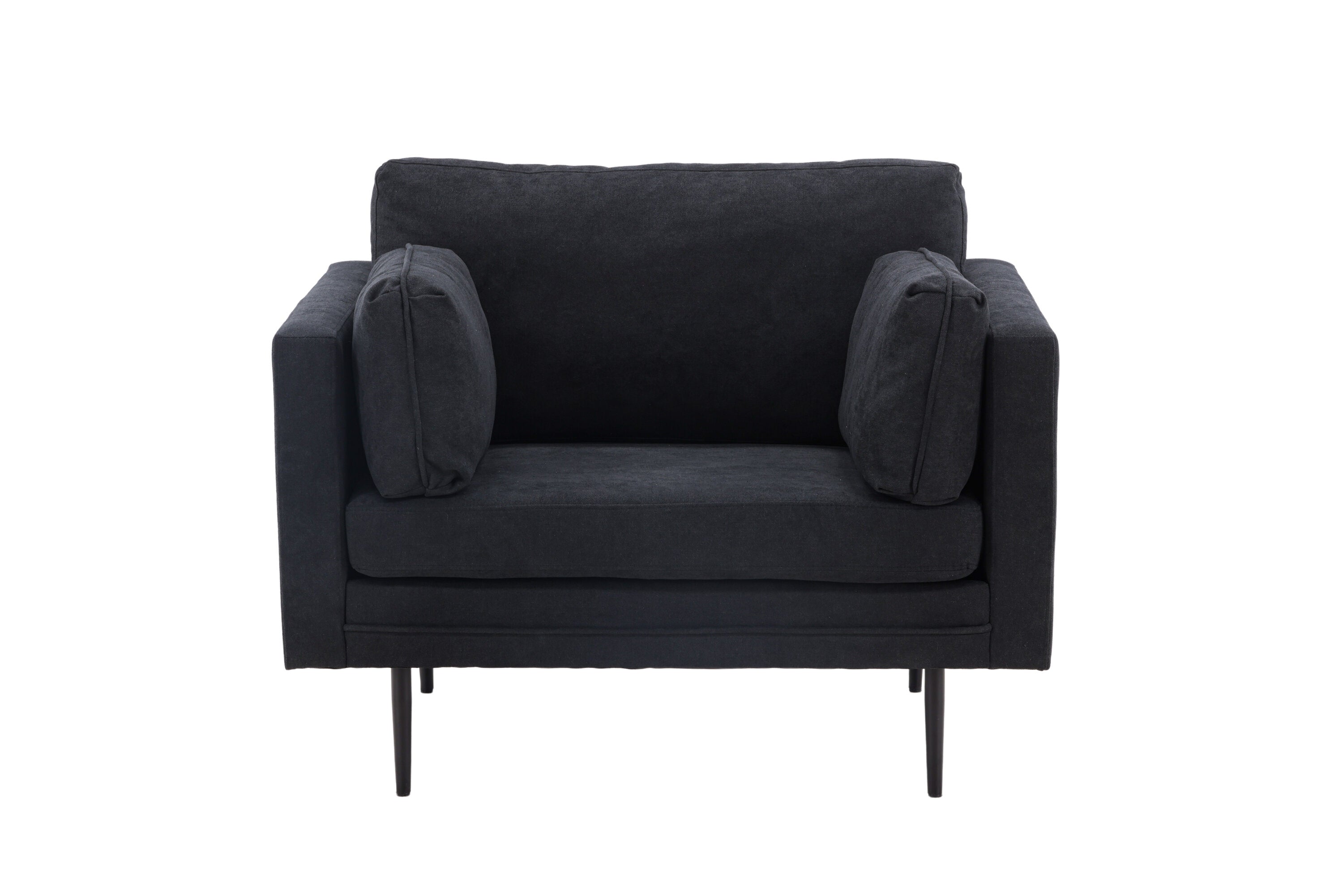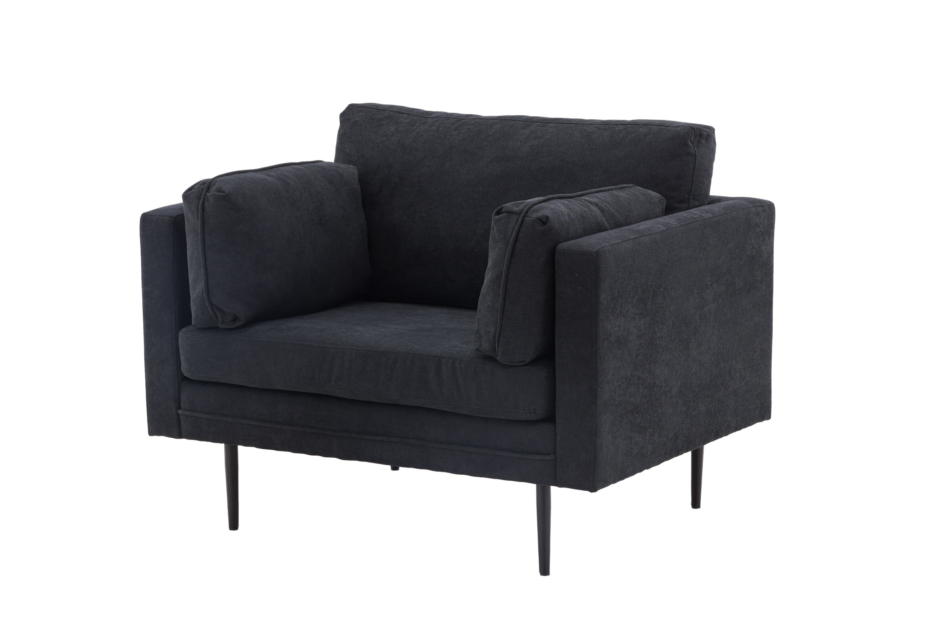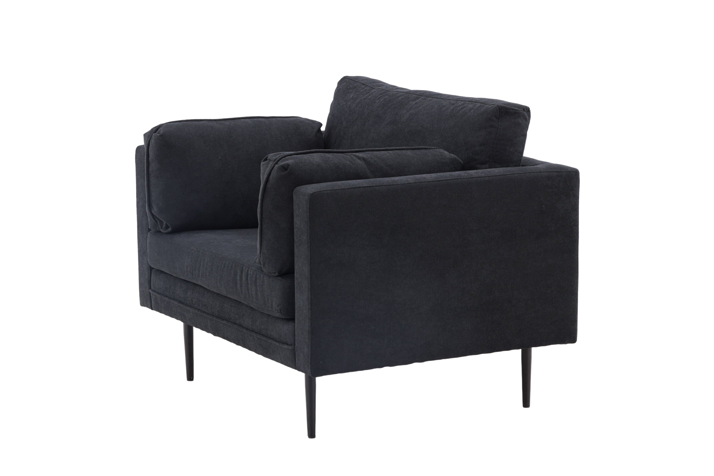 Ioane is een moderne fauteuil met veel comfort en stijlvol ontwerp! Hij is gekleed in zwart polyesterstof met linnenmengsel die gemakkelijk te onderhouden is en ook een elegante indruk geeft in de woonkamer. Het rechte maar tegelijkertijd zachte ontwerp en de smalle, hoge poten creëren een luchtig en uitnodigend gevoel en vergemakkelijken ook het stofzuigen. Deze zwarte fauteuil heeft gewoon een ongelooflijk goed doordacht totaalontwerp met een aangeklede rugleuning waardoor de fauteuil in het midden van de kamer kan worden geplaatst. Dus je kunt helemaal zelf kiezen, richt de fauteuil alleen in als stijlicoon of in een groep samen met onze 3-zitsbank die ook in de Ioane-serie zit. Er zijn geen beperkingen als het gaat om een modern en tijdloos meubelstuk zoals deze!