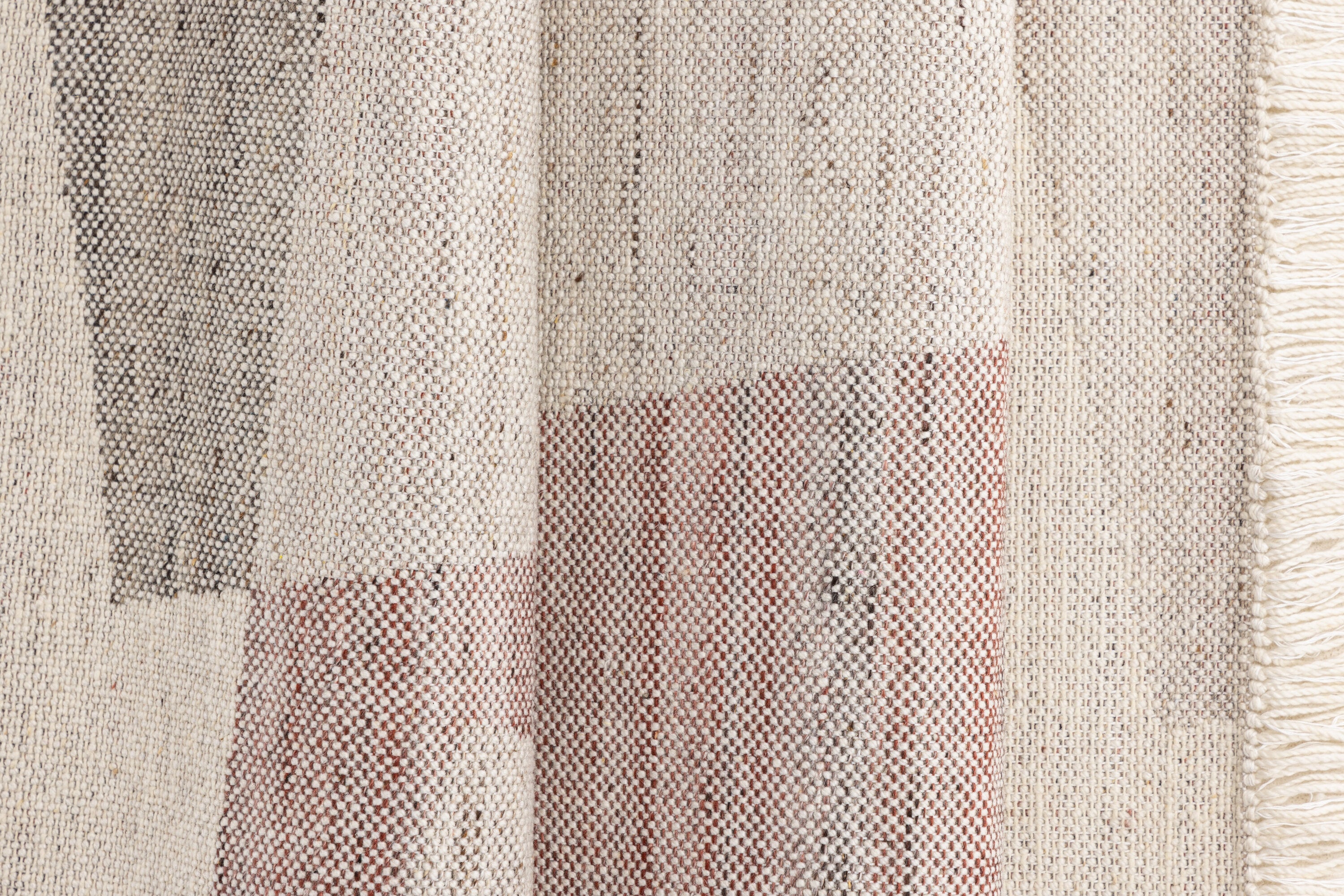 Het abstracte patroon van het Kaha-tapijt in een mix van beige, wit, grijs en rood geeft het een unieke en exclusieve uitstraling. De lichte franjes aan de korte zijde versterken het esthetische uiterlijk van het tapijt en voegen extra charme toe. Met het Kaha-tapijt kun je een stijlvolle en indrukwekkende sfeer in huis creëren en ervoor zorgen dat je gasten onder de indruk zijn van de omvang en het ontwerp.