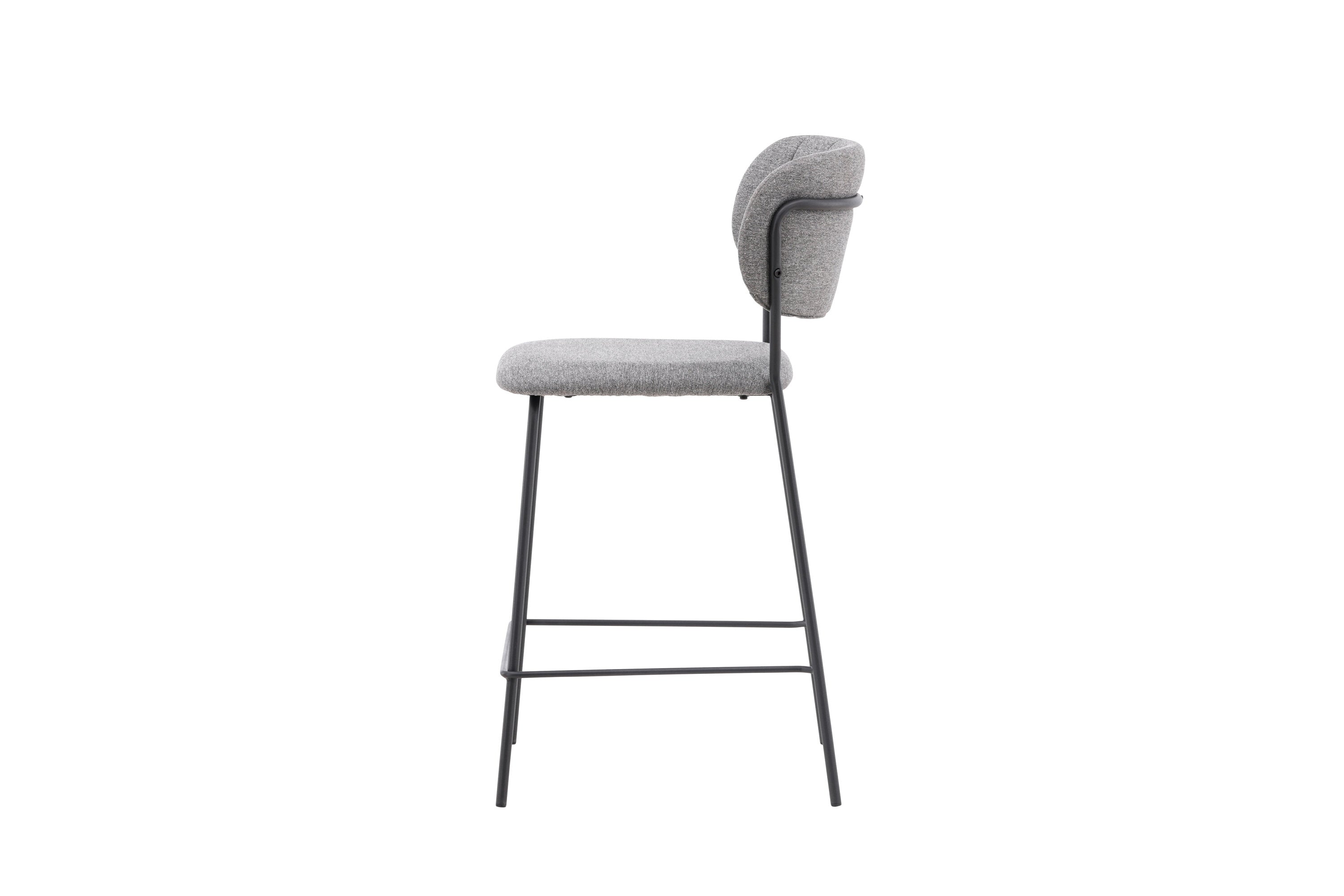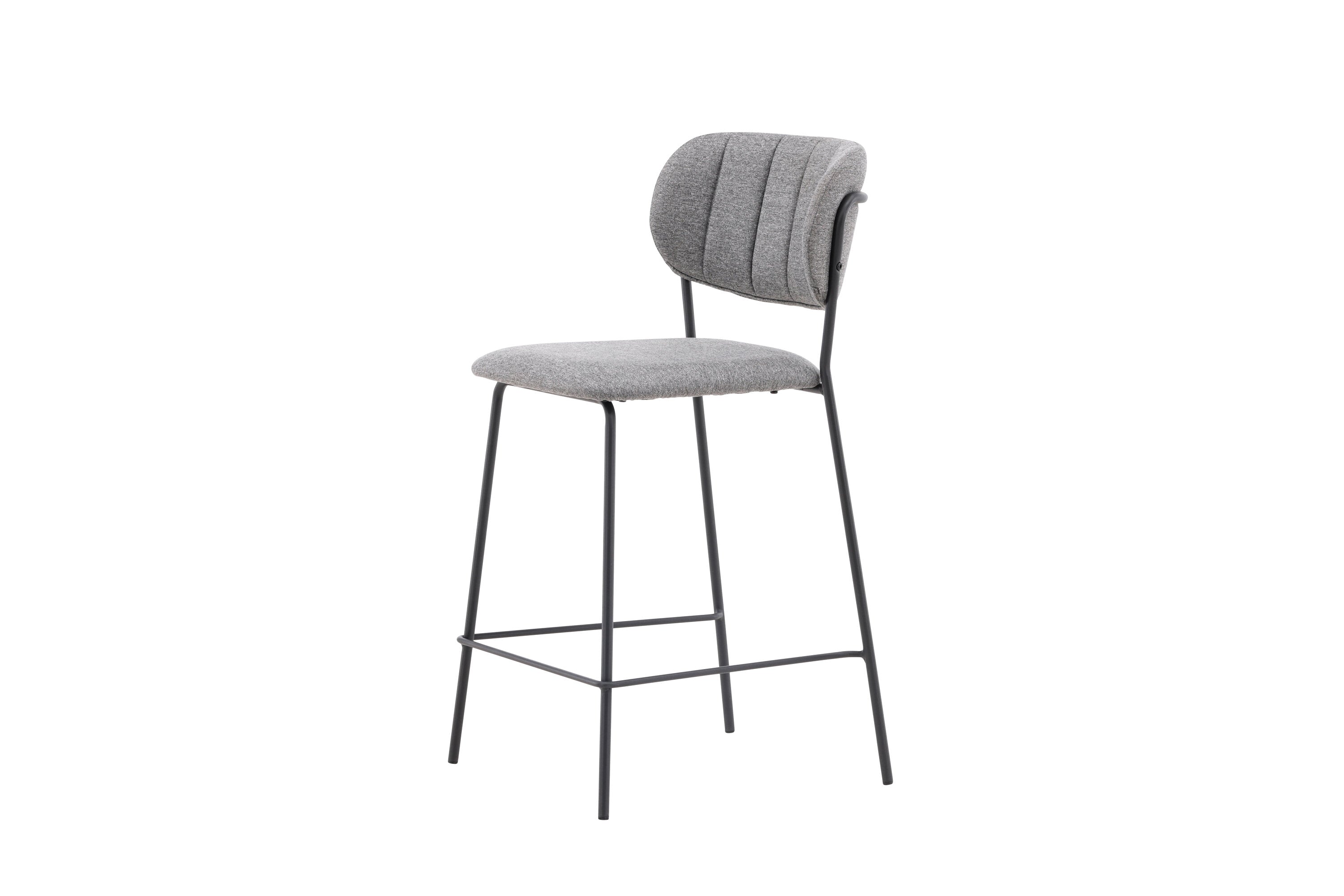 Richt het hart van je huis modern, comfortabel en tijdloos in met een opvallende barkruk uit de Kotka-serie in stijlvol design! Deze barkruk heeft een volledig bekleed ontwerp met een licht gebogen rug en zitting in grijze polyester stof met stijlvolle decoratieve stiksels, en de stoelpoten zijn smal en zwart van staal met geïntegreerde voetensteun - gegarandeerd mooi en comfortabel. Creëer een uitnodigende en aangename uitstraling rond je bartafel en geniet van heerlijke maaltijden samen!