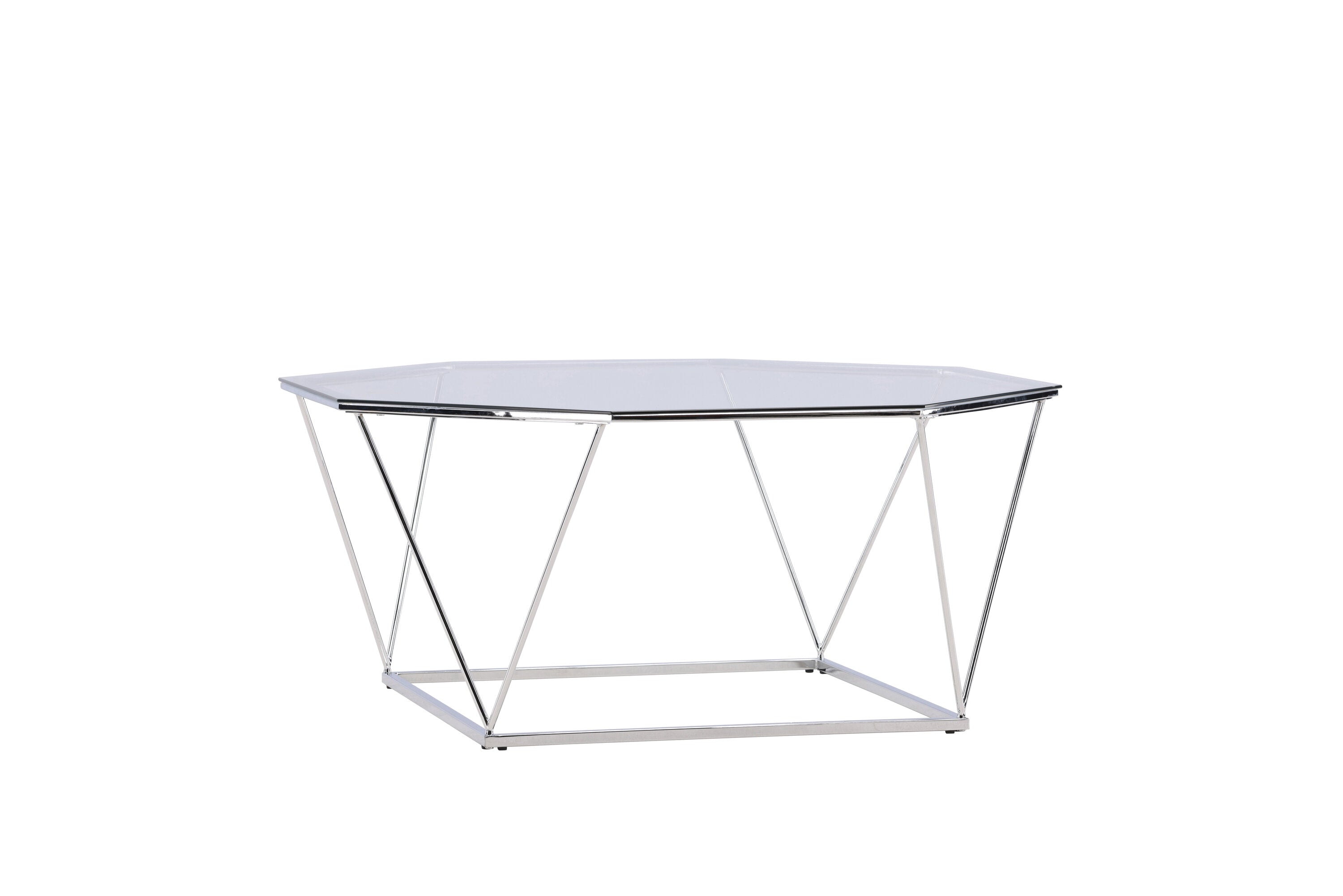 - Deze elegante salontafel is gemaakt van glas met een zilveren stalen frame, waardoor het een moderne en luxueuze uitstraling heeft.