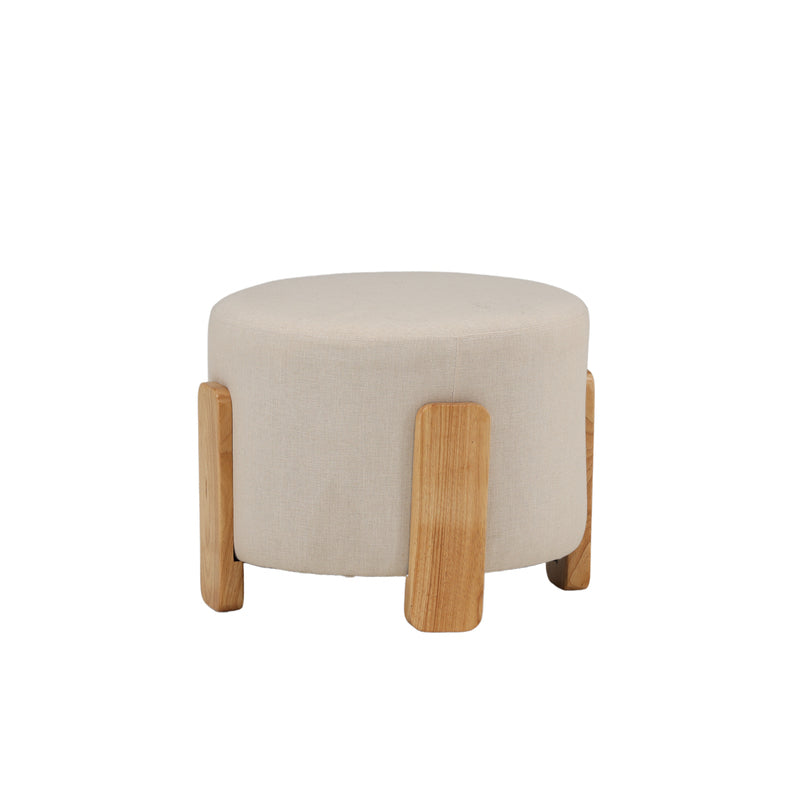 De poef is bekleed met een mooie naturel stof waardoor deze gemakkelijk te combineren is met andere kleuren in huis. Het comfortabele kussen van de poef biedt de perfecte plek om te ontspannen en te loungen, terwijl de stevige eiken poten zorgen voor stabiliteit.