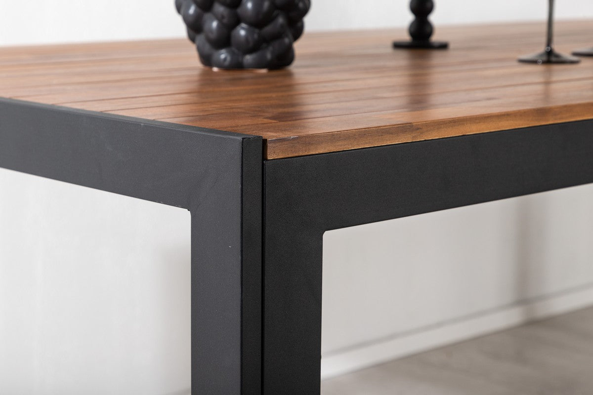 Strak, stijlvol en tijdloos, De Rama Tuintafel voegt een vleugje Scandinavisch design toe aan je buitenruimte. Het decoratieve acaciahouten tafelblad contrasteert prachtig met de slanke zwarte metalen poten, wat zorgt voor een elegante en moderne uitstraling. Perfect om vrienden en familie samen te brengen voor lange, gezellige diners in de open lucht!