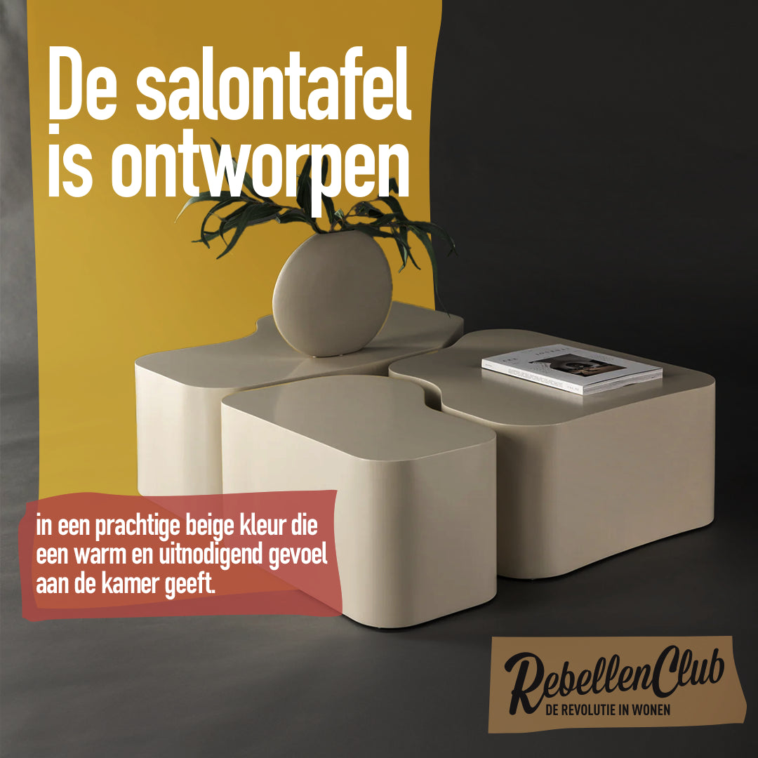 - De salontafel is ontworpen in een prachtige beige kleur die een warm en uitnodigend gevoel aan de kamer geeft.