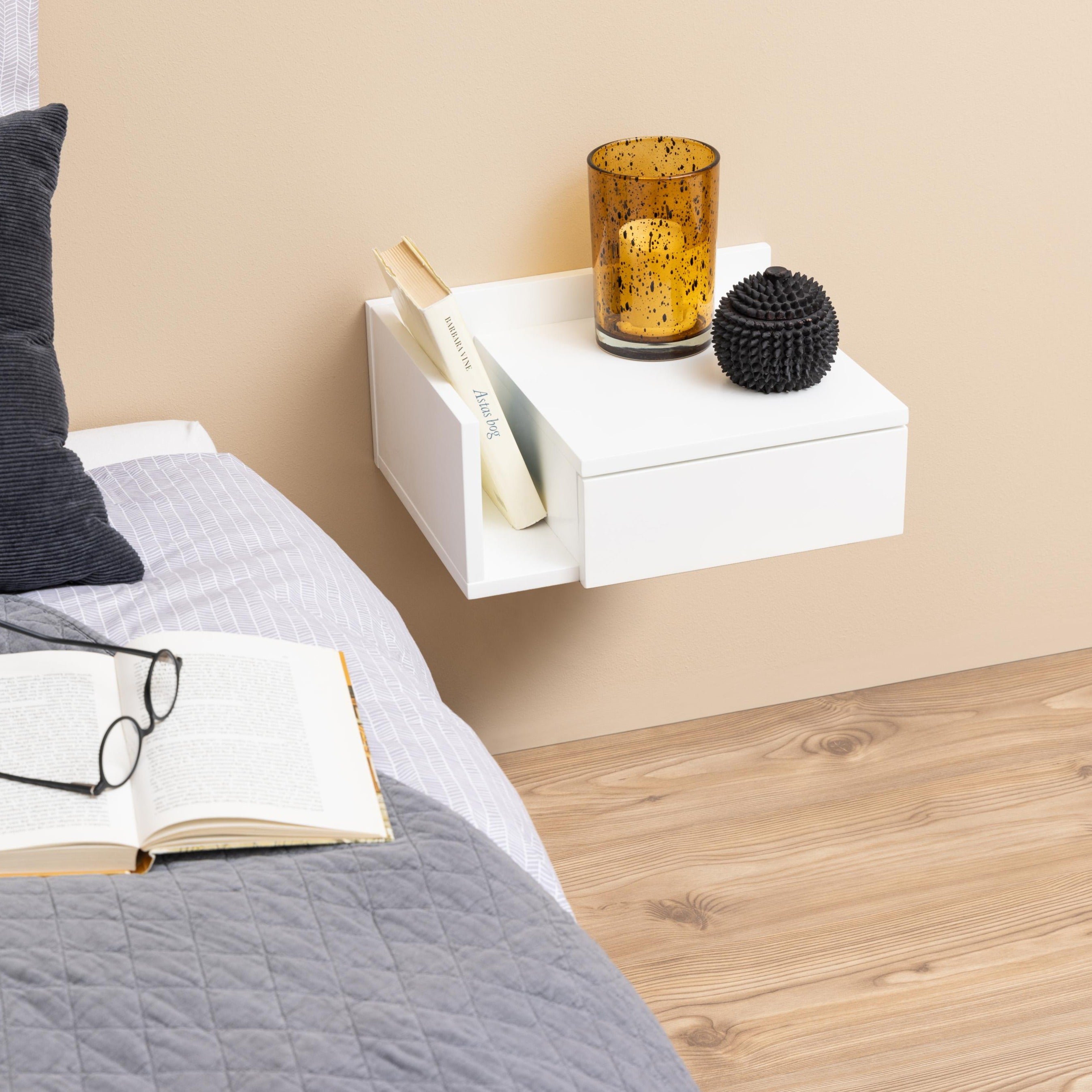 Het open vak en de mogelijkheid tot wandmontage maken het Suco nachtkastje tot een praktische en tegelijkertijd stijlvolle keuze. Je kunt het nachtkastje aan zowel de linker- als rechterkant van je bed monteren op de gewenste hoogte, wat zorgt voor veelzijdigheid en gemak. Met zijn strakke lijnen en hedendaags ontwerp is het een subtiele toevoeging die perfect opgaat in de minimalistische stijl van jouw slaapkamer.