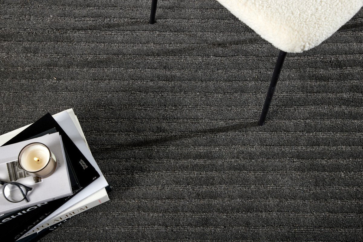 Het Trevi Vloerkleed in donkergrijs creëert een warme en gezellige sfeer in elke ruimte. Dit rechthoekige kleed van wol met een subtiele glans, wat het interieur een verfijnde uitstraling geeft.