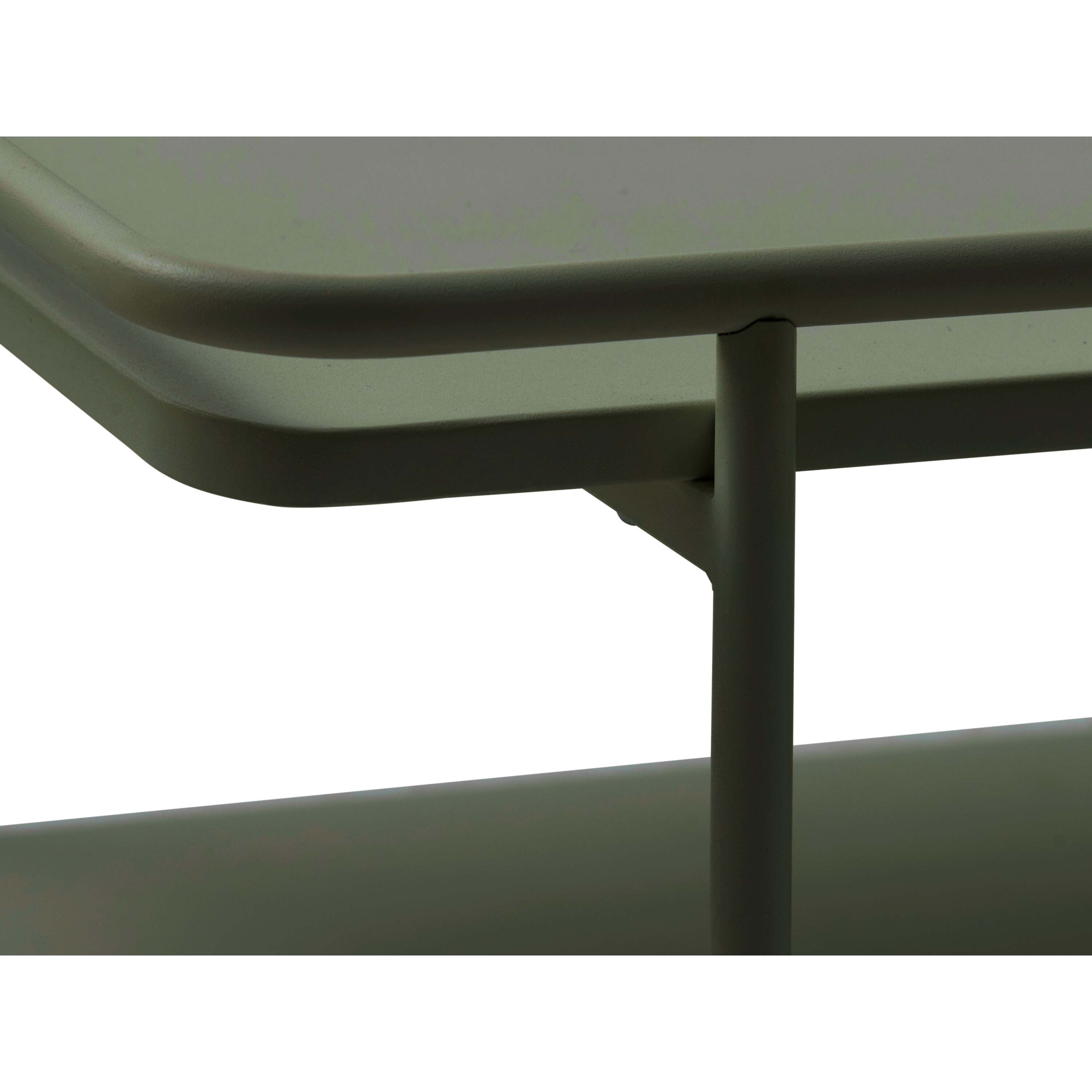 Het frame is gemaakt van stevig gepoedercoat metaal, wat de tafel niet alleen een strakke uitstraling geeft, maar ook robuust en onderhoudsvriendelijk maakt. Het extra blad onderin is ideaal voor je favoriete tijdschriften, een dienblad of gewoon wat stijlvolle accessoires.
