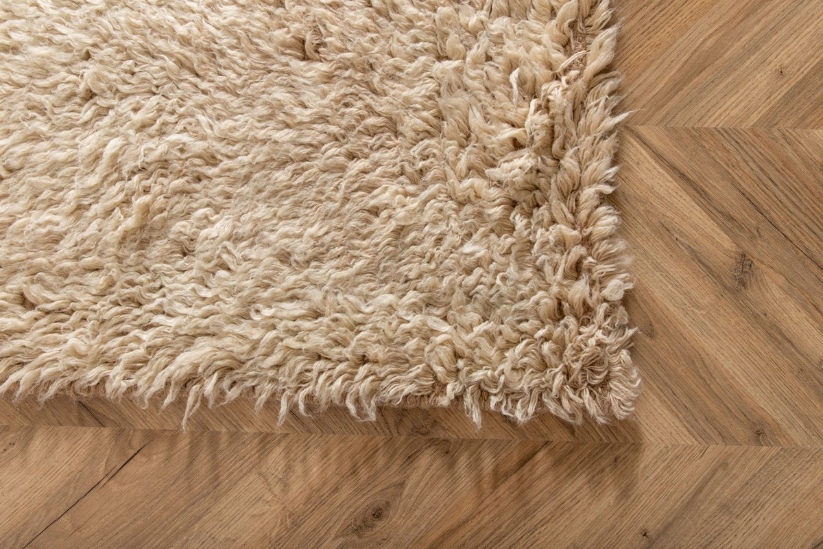 Het Vera vloerkleed is een heerlijk zacht en luxe wollen kleed in een champagnekleurige beige tint. Dit handgeweven vloerkleed heeft een hoge pool en een volle structuur, wat zorgt voor een elegante en warme uitstraling in huis. De neutrale kleur maakt het eenvoudig te combineren met diverse interieurstijlen. Perfect onder een salontafel of in de slaapkamer als knusse plek.