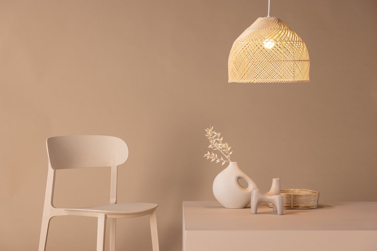 De afgeronde kap, gemaakt van natuurlijk gekleurd riet, is gevlochten tot een fijn patroon dat een warme gloed verspreidt. Hang ‘m boven de eettafel en geniet van lange, sfeervolle diners met de familie, of boven de salontafel voor knusse filmavonden met een ontspannen licht.