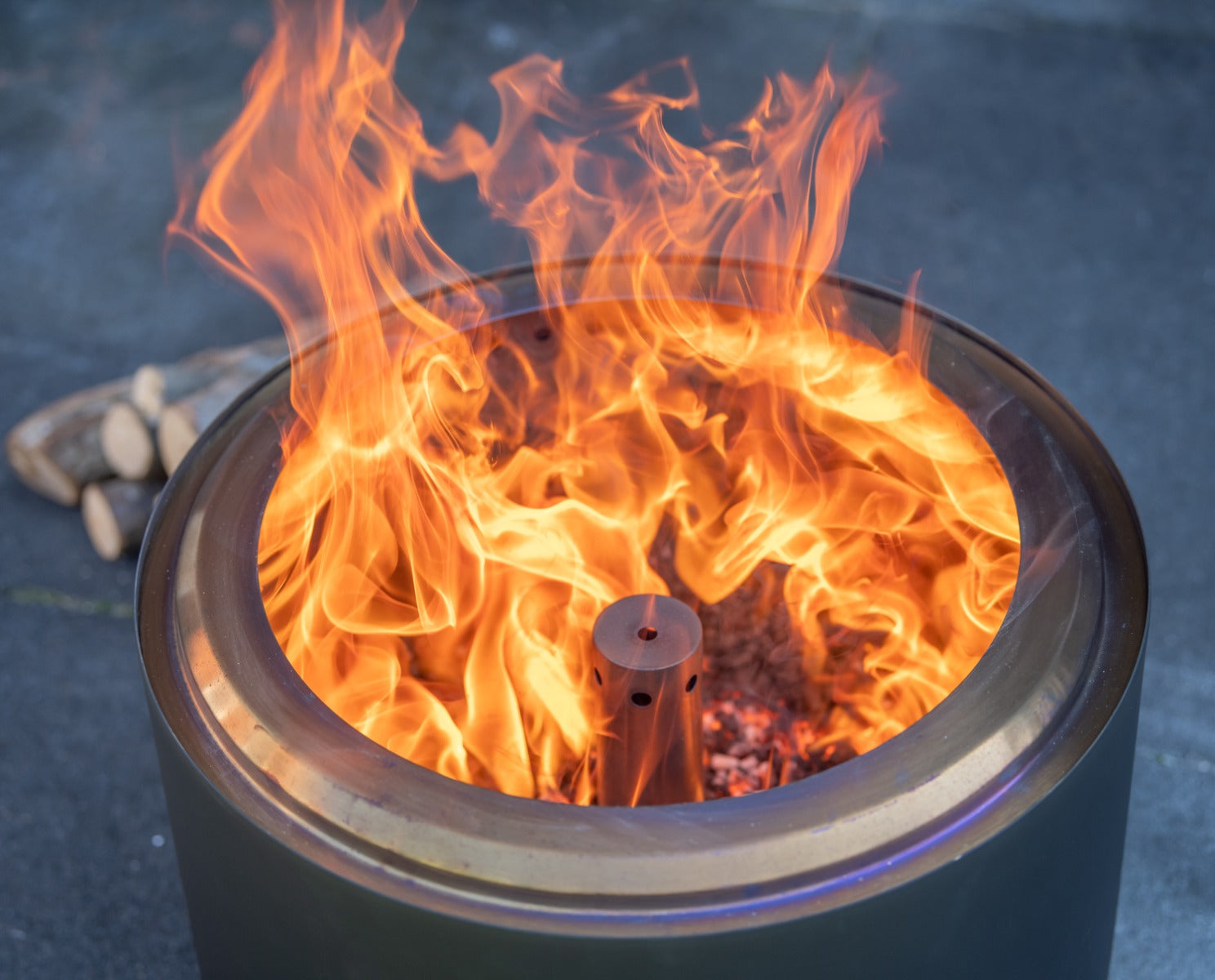 Met de cilindervormige structuur en ventilatieopeningen aan de onderkant verbetert de luchtcirculatie. Dit draagt bij aan een efficiëntere verbranding en een schonere vlam. Bovendien is de vuurhaard dubbelwandig, waardoor het vuur tussen de wanden circuleert en uit drie punten brandt. Het resultaat? Een indrukwekkend grote en gelijkmatige vlam die elke keer weer een betoverende sfeer creëert. Hoe groter het model van de Volcano-lijn, hoe indrukwekkender de vlam die uit de vuurhaard tevoorschijn komt