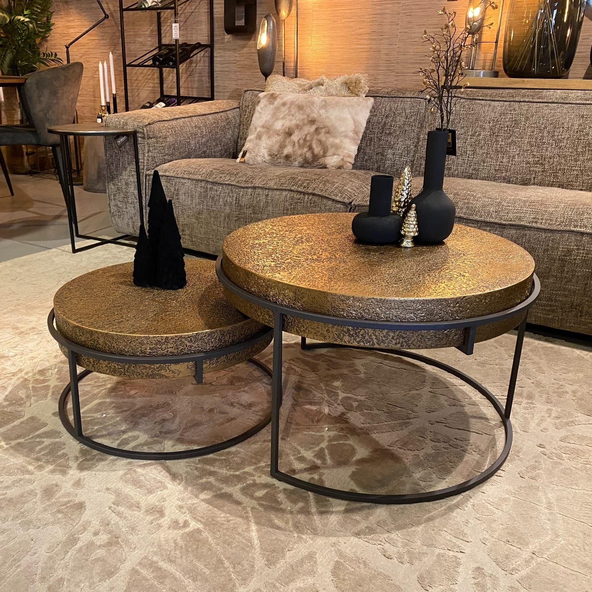 - De Jasper salontafel set van Reefs Interior combineert een unieke liquid metal look met een glanzende gouden kleur wat zorgt voor een luxe uitstraling