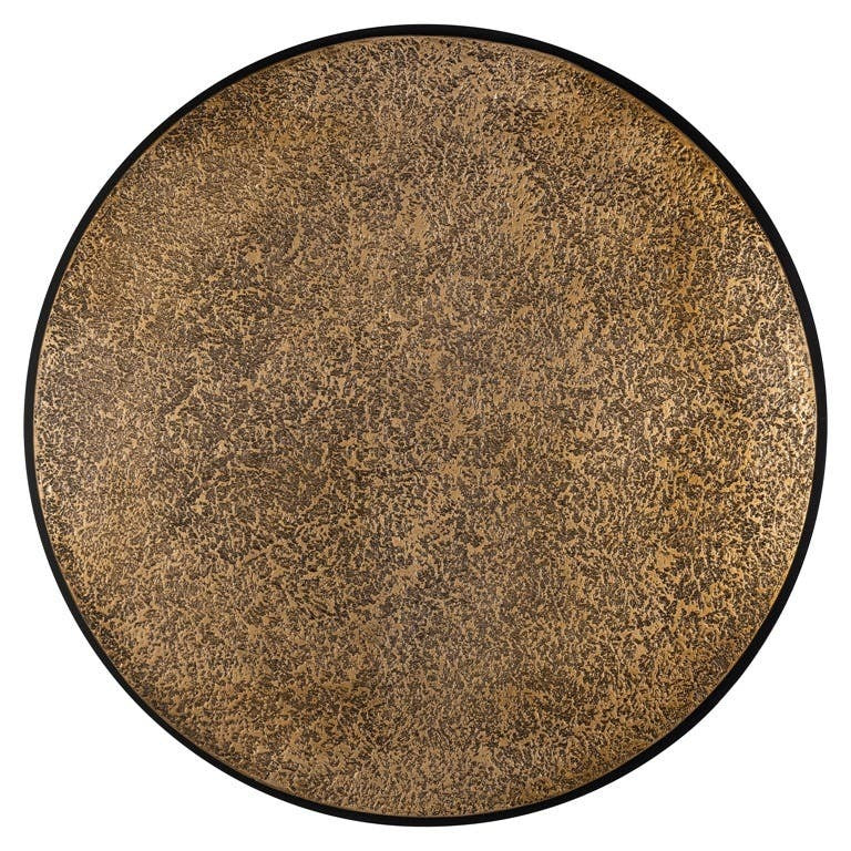 - De tafels zijn voorzien van stevige, zwarte metalen poten die een robuuste en stoere aanvulling vormen op het gouden blad.