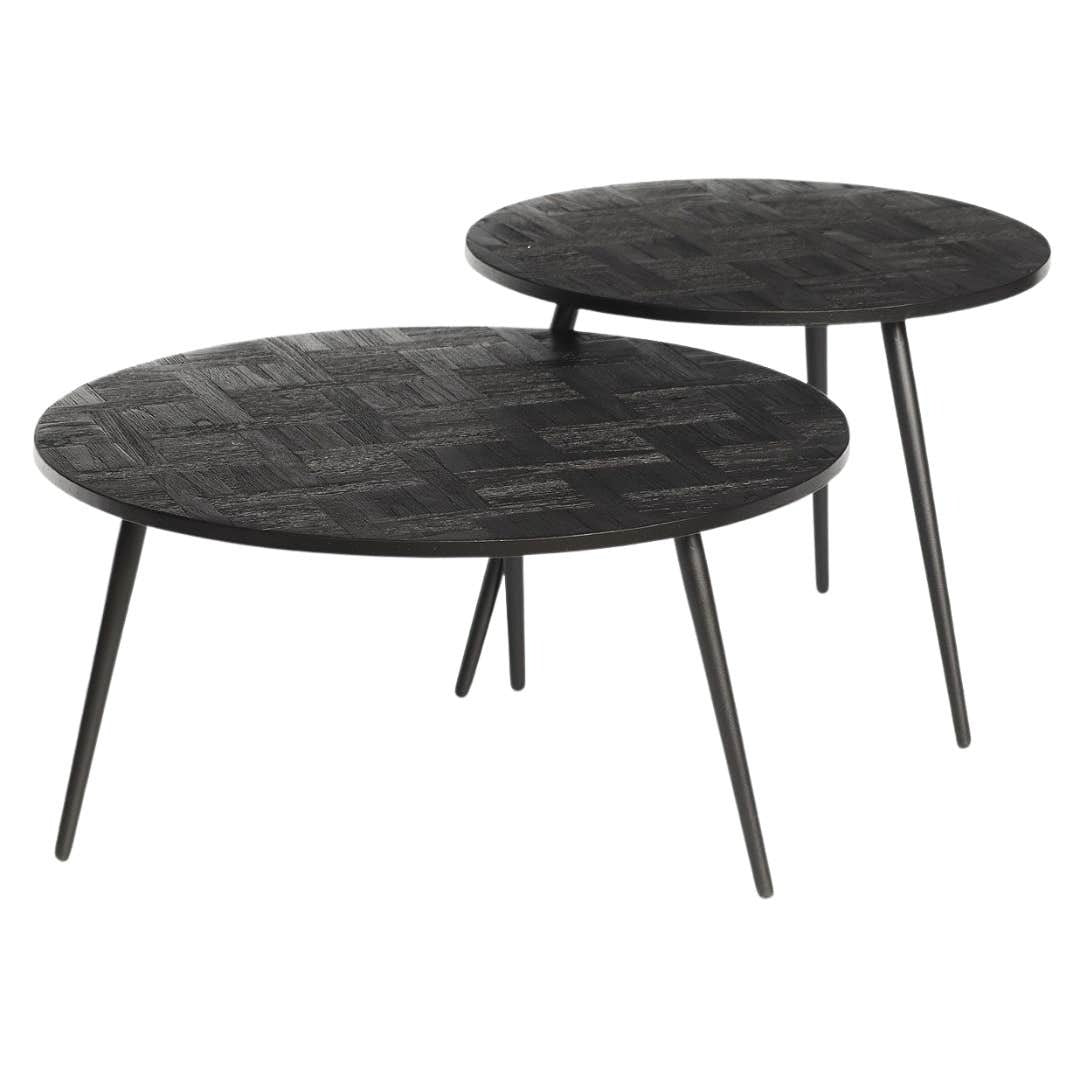 - Twee Maten: Grote tafel (Ø74cm, H38cm) en kleinere tafel (Ø58cm, H45cm) voor diverse gebruiksmogelijkheden.