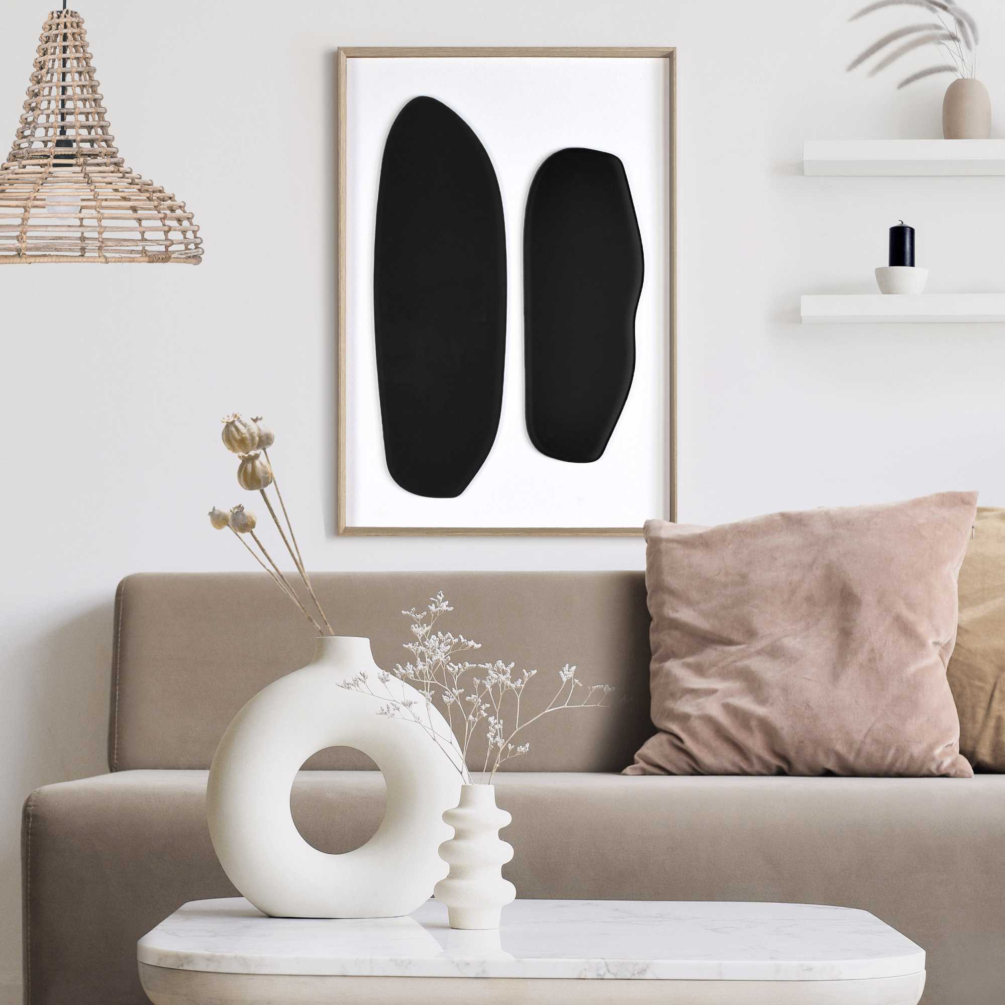 - Handgemaakt Scandinavisch minimalistisch schilderij met 3D-textuur en acrylglas vormen.